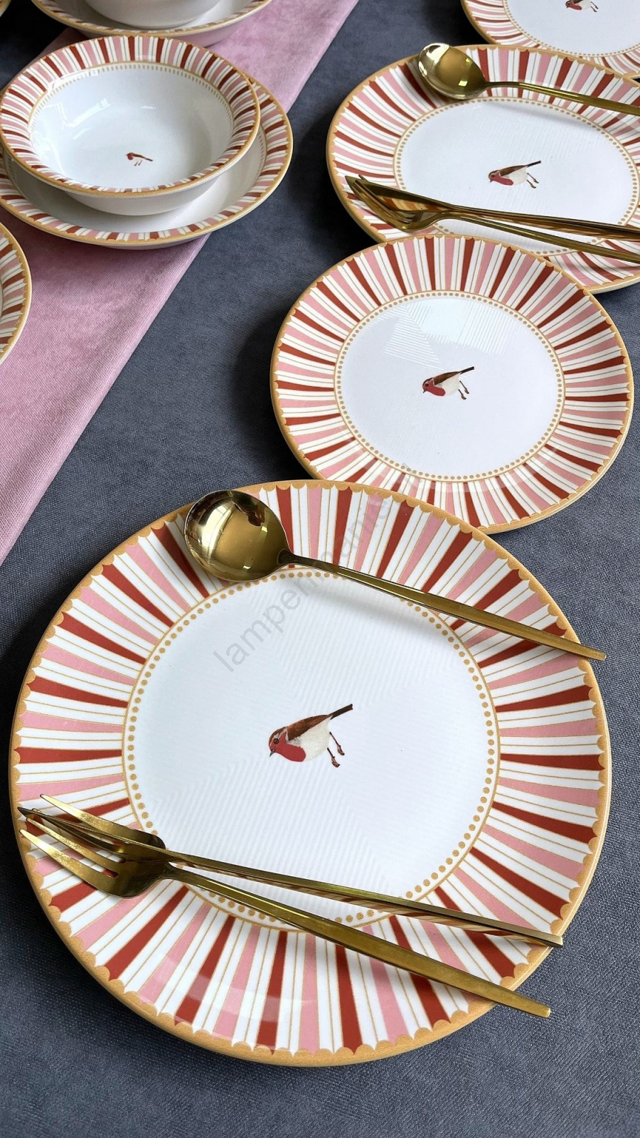 24-delige keramische serviesset – wit/rood met gouden accenten