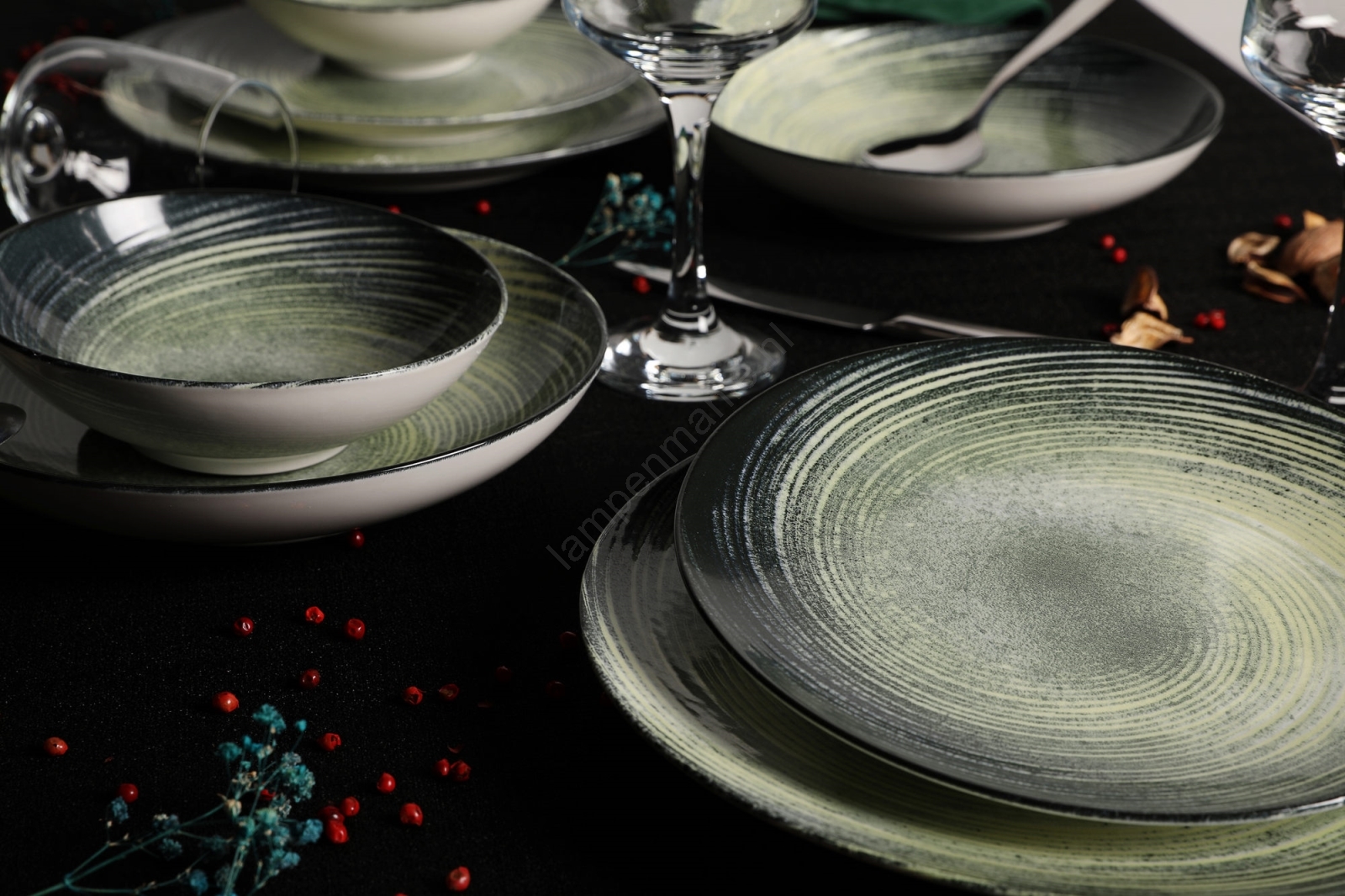 24-delige serviesset groen/zwart/porselein