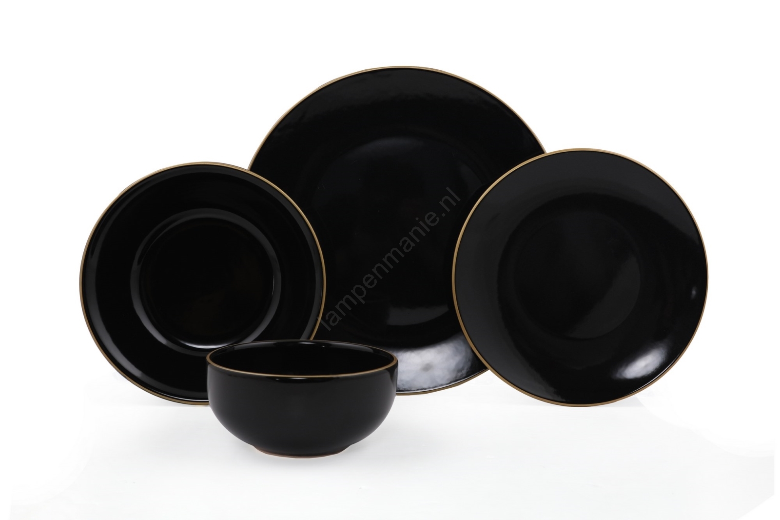 24-delige serviesset zwart/goud/steengoed
