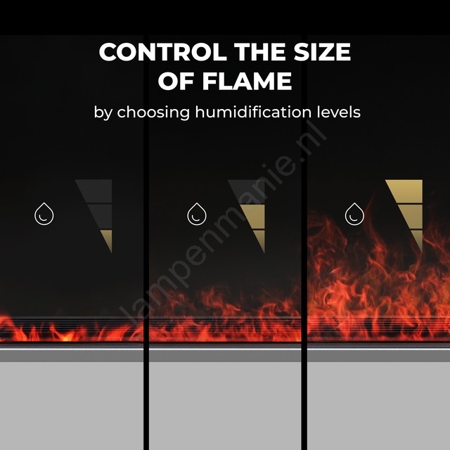 • Het apparaat kan via Wi‑Fi met een slimme app worden bediend; stel timer, verwarmingsstanden en de kleur van het effect in.