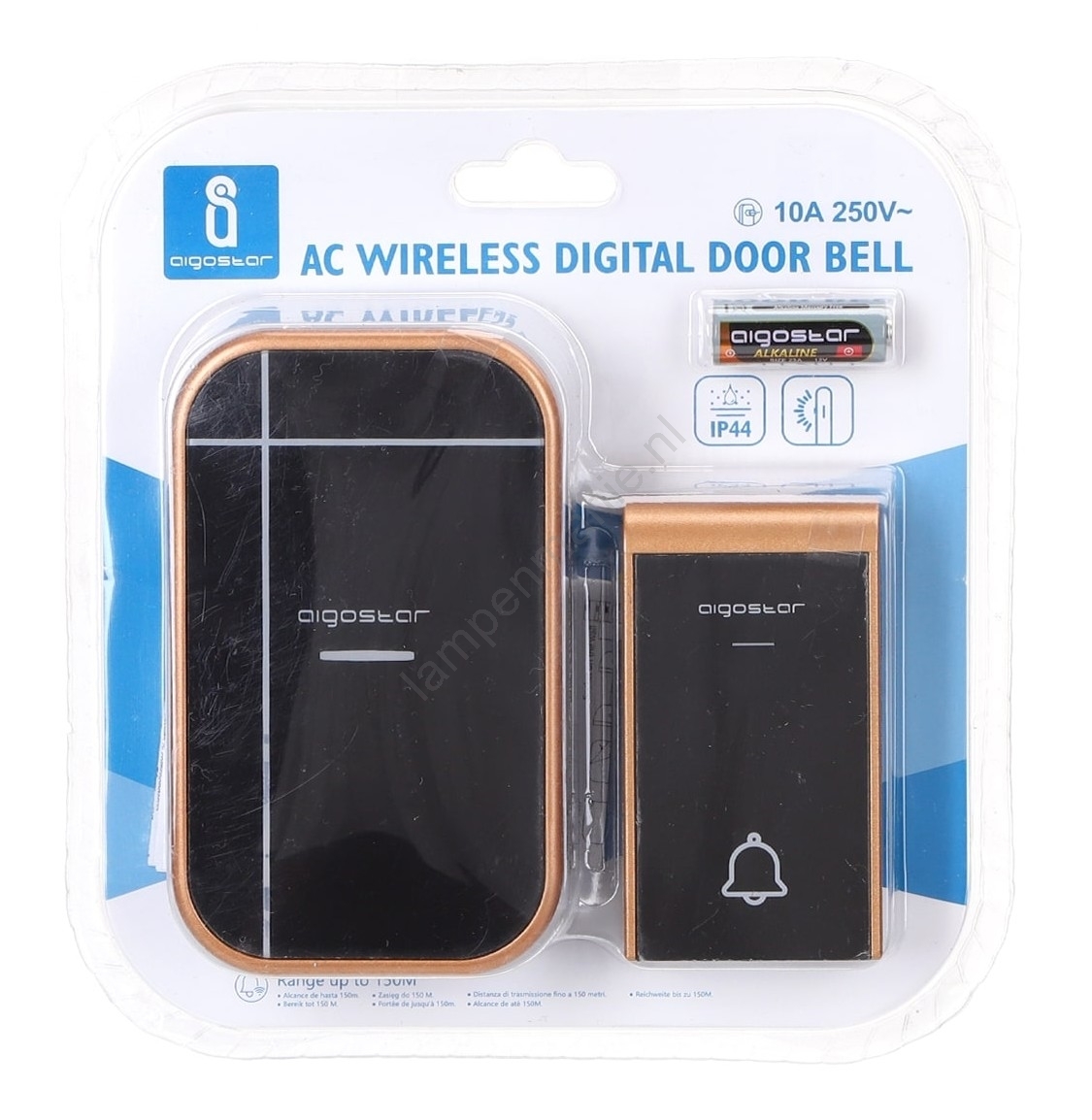 Aigostar - Draadloze deurbel voor 230V/12V-stopcontact, IP44, zwart