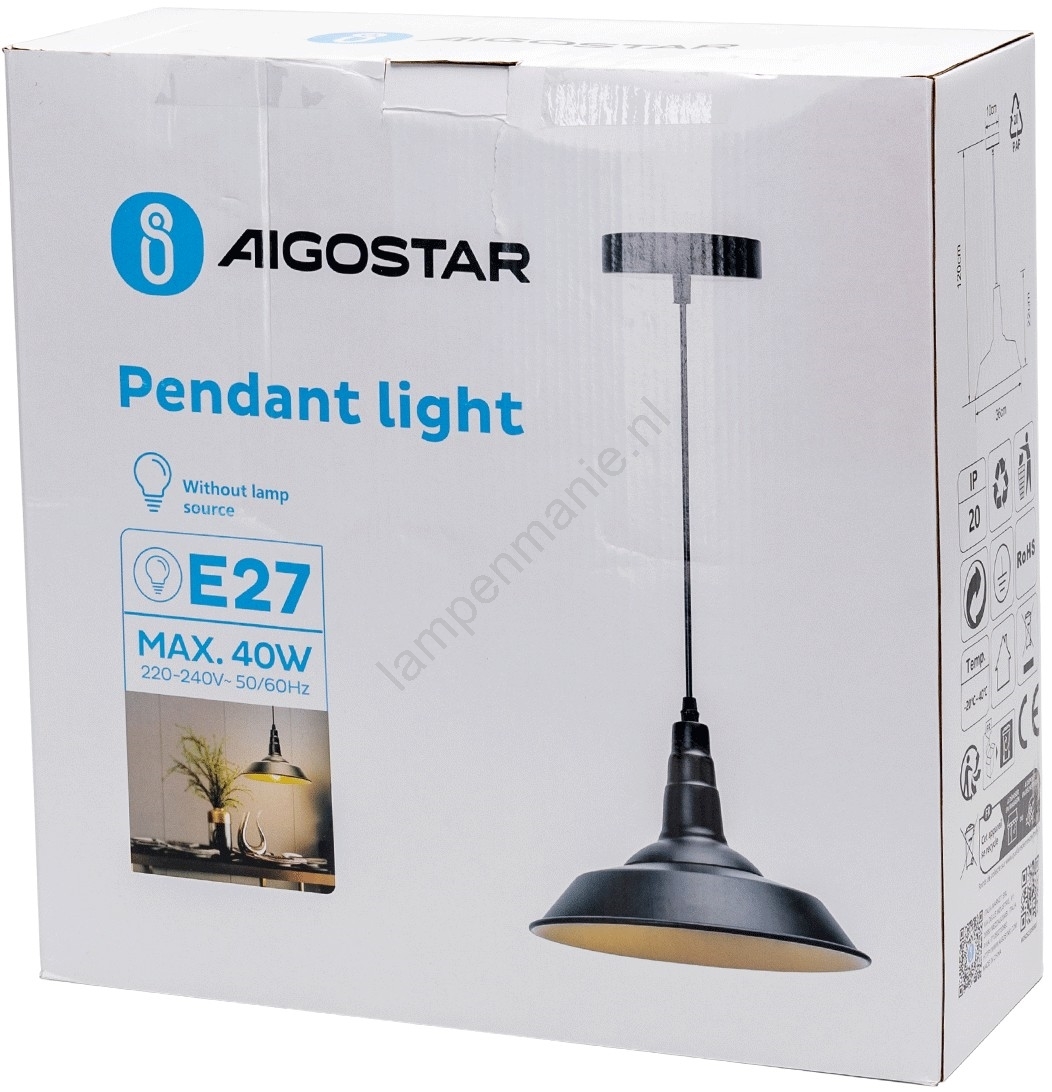 Aigostar - Hanglamp aan een koord 1xE27/60W/230V zwart