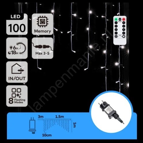 • Aigostar - LED-lichtsnoer voor buiten 100xLED/6W/230V/8 functies 1,5x1m IP44 koel wit + afstandsbediening