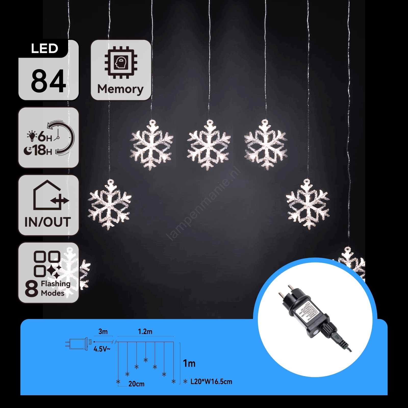 Aigostar - LED buitensnoer 84xLED/8 functies 1,2x1m IP44 koud wit sneeuwvlokken