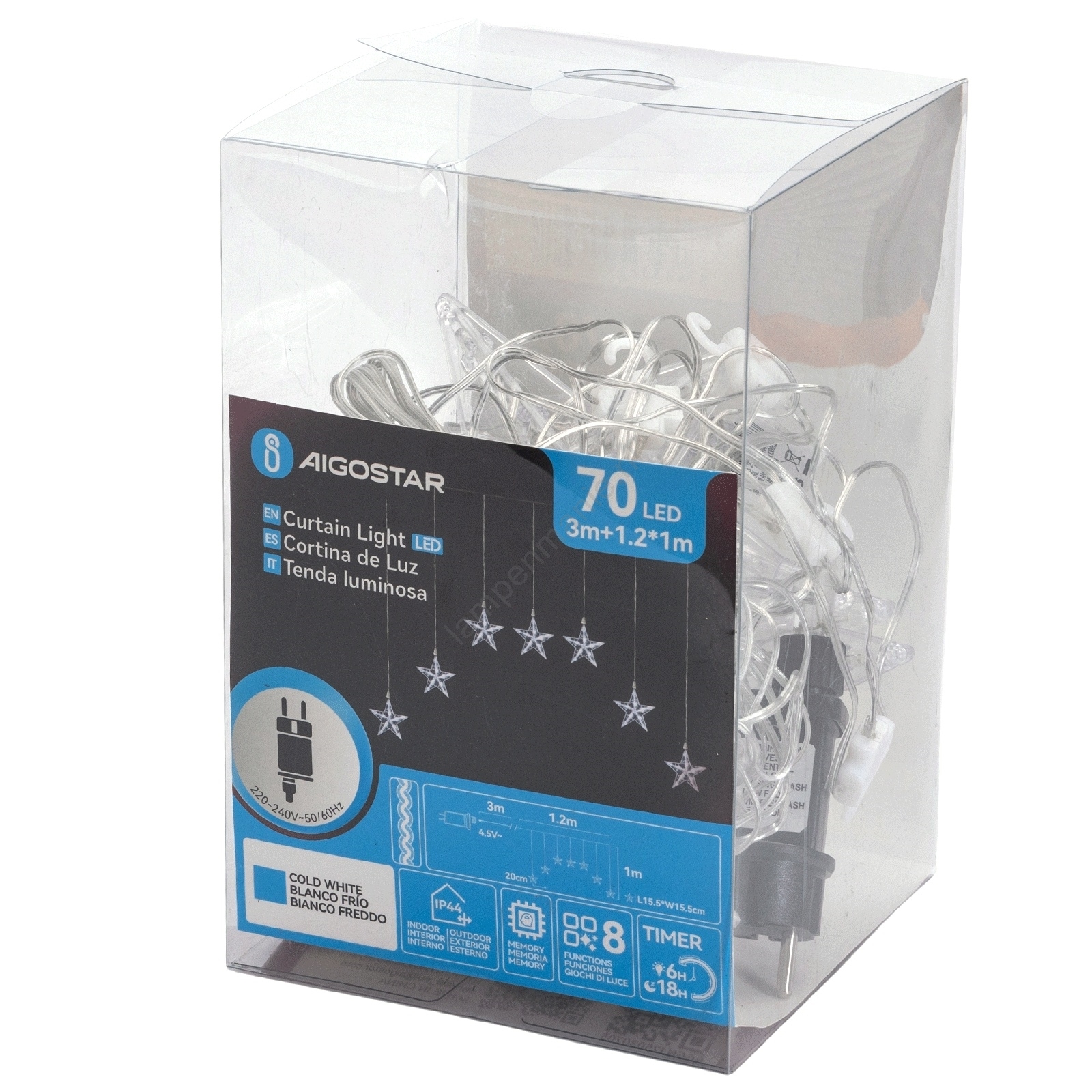 Aigostar - LED buiten kerstlichtsnoer 70xLED 1,2x1m IP44 koud wit sterren