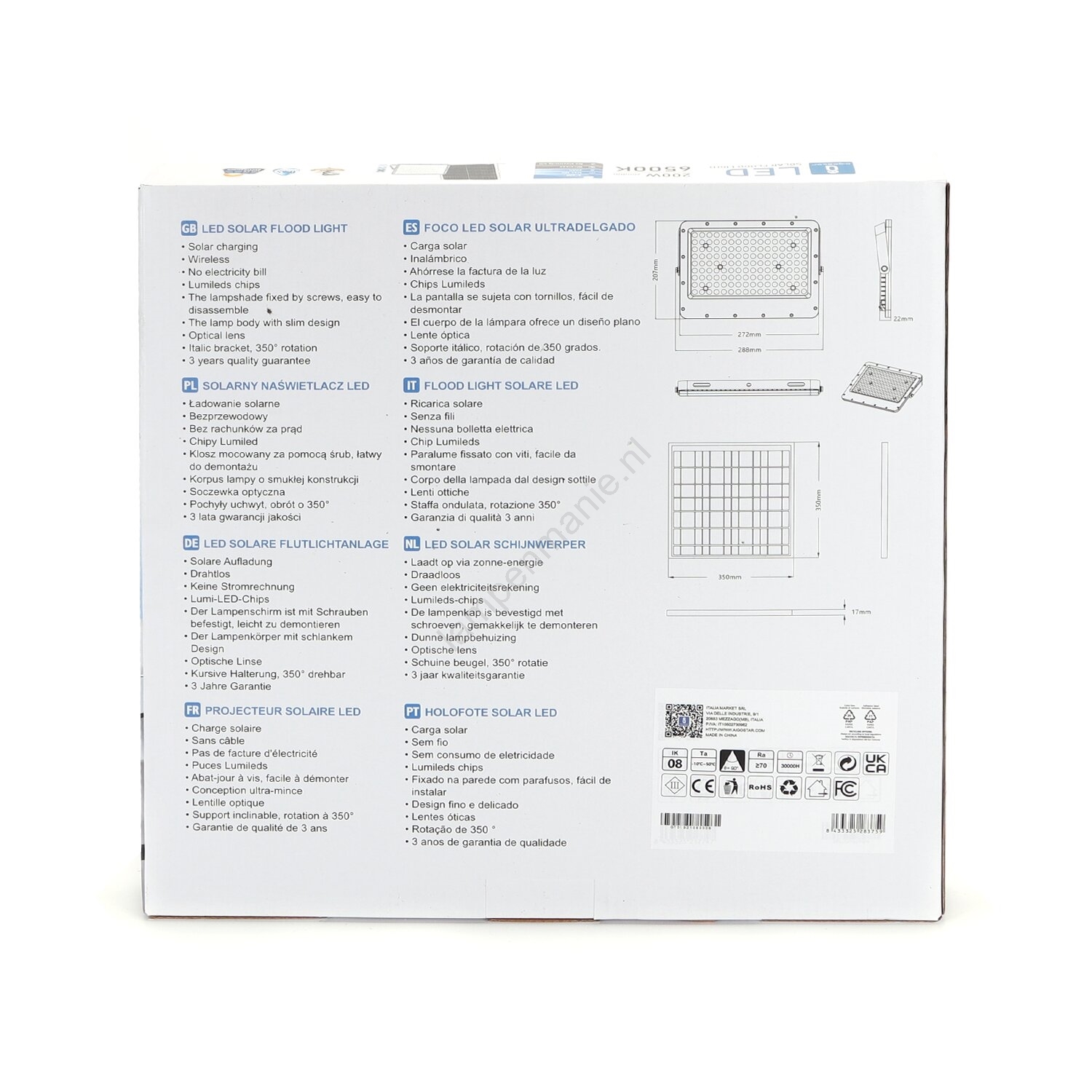 Aigostar - Dimbare LED-zonneschijnwerper LED/200W/3,2V IP65 20000 mAh + afstandsbediening