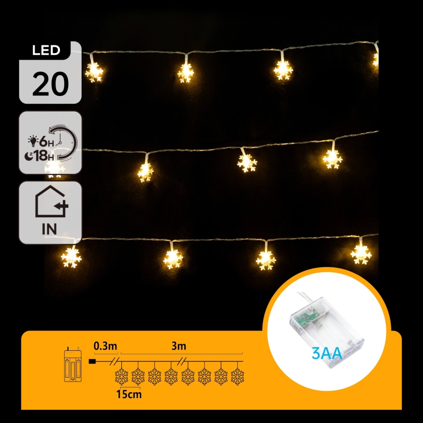 Aigostar - LED-lichtsnoer 20xLED/3xAA 3,3 m sneeuwvlokken