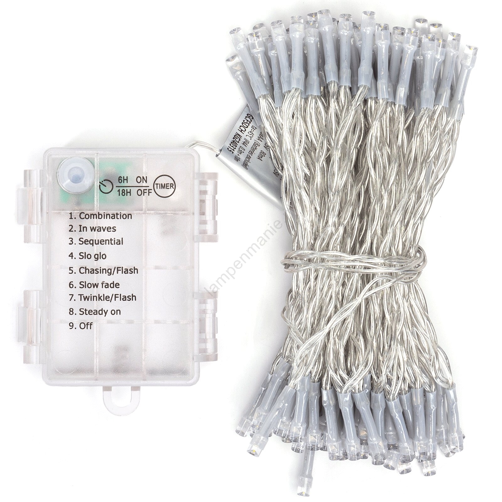 • Aigostar - LED-buitenlichtsnoer, 100 LED / 8 functies, 3×AA, 10,3 m, IP44, warm wit