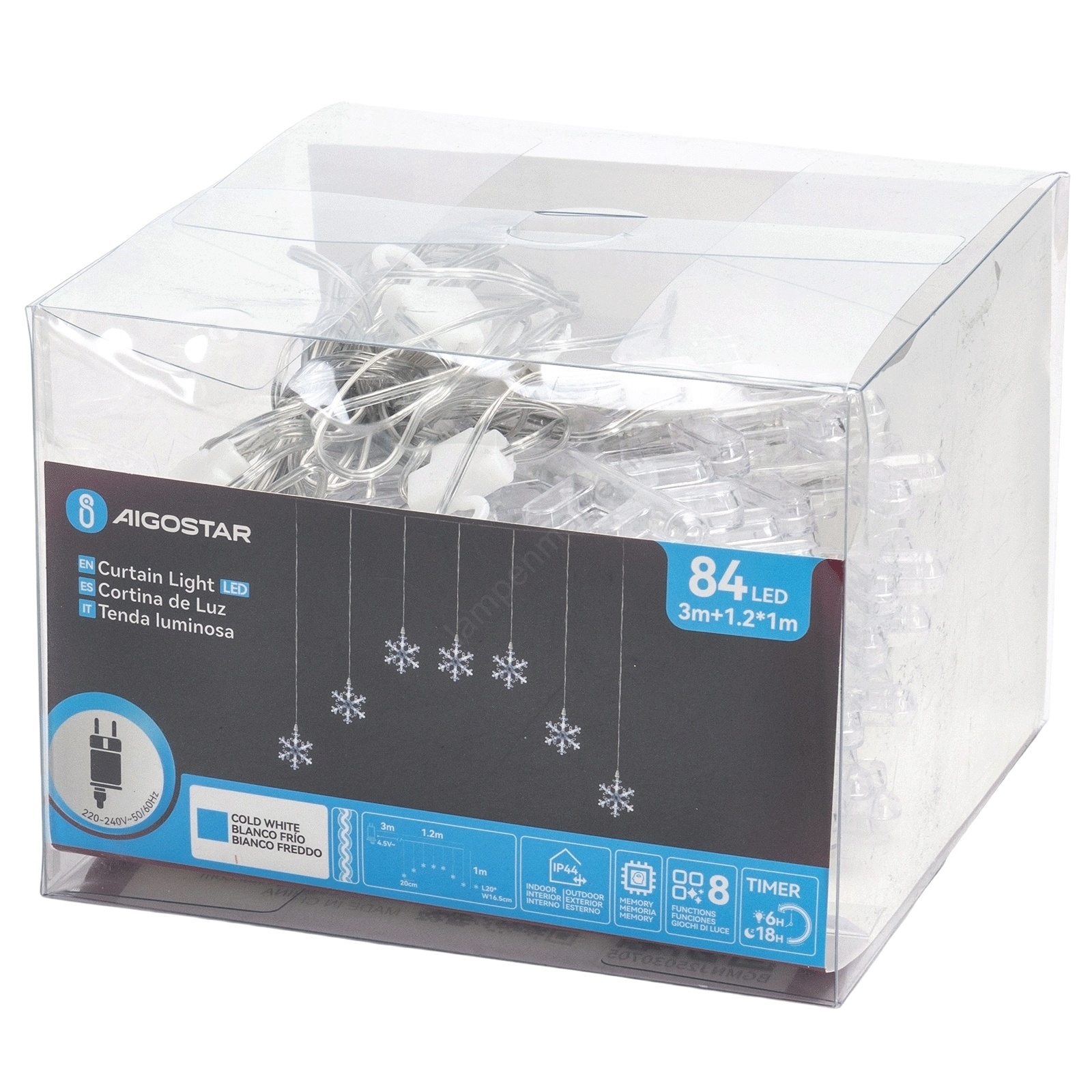 • Aigostar - LED buitenlichtsnoer, 84 LED, 8 functies, 1,2 x 1 m, IP44, koel wit, sneeuwvlokken