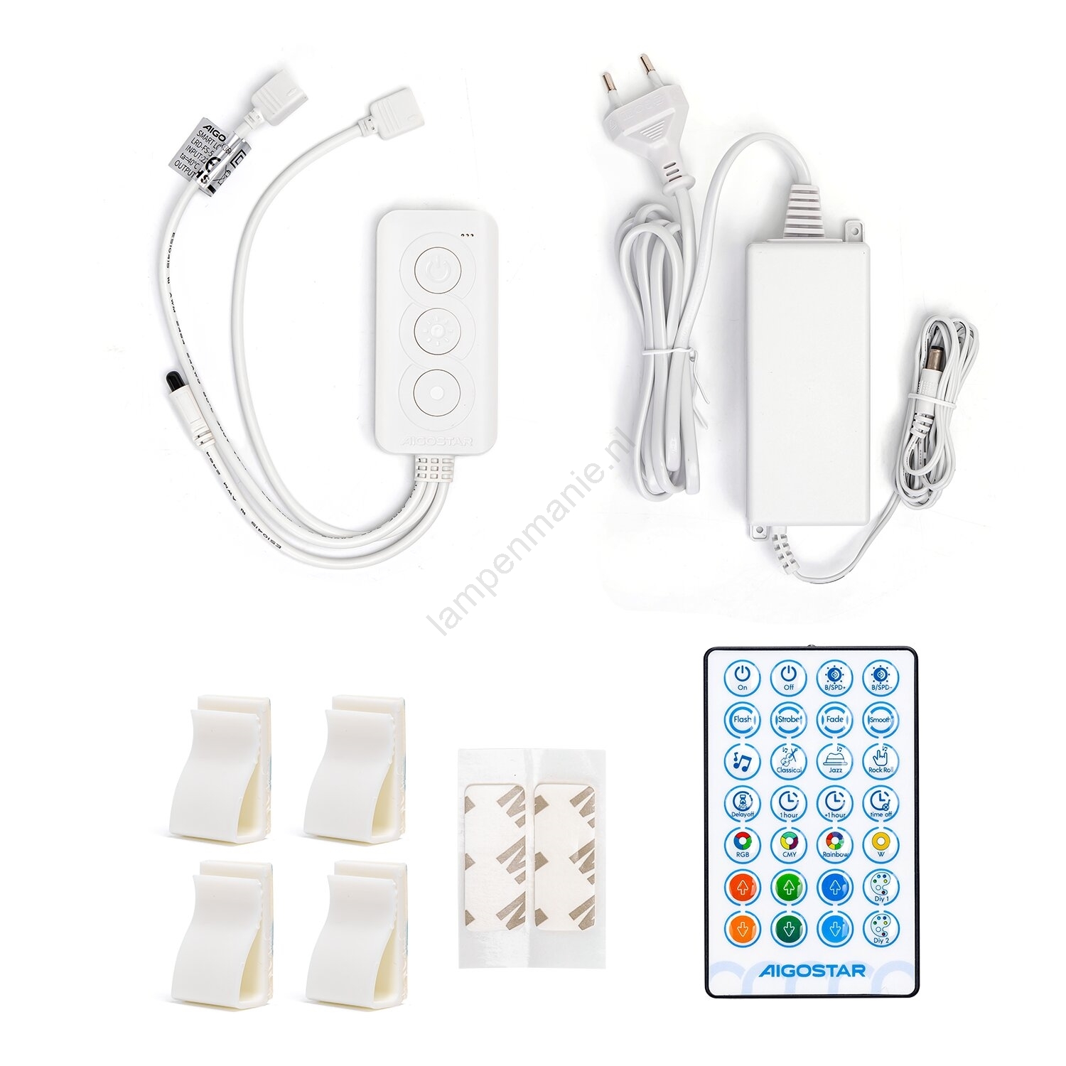 • Inhoud van de verpakking: 2x LED-strip (7,5 m), adapter en afstandsbediening.