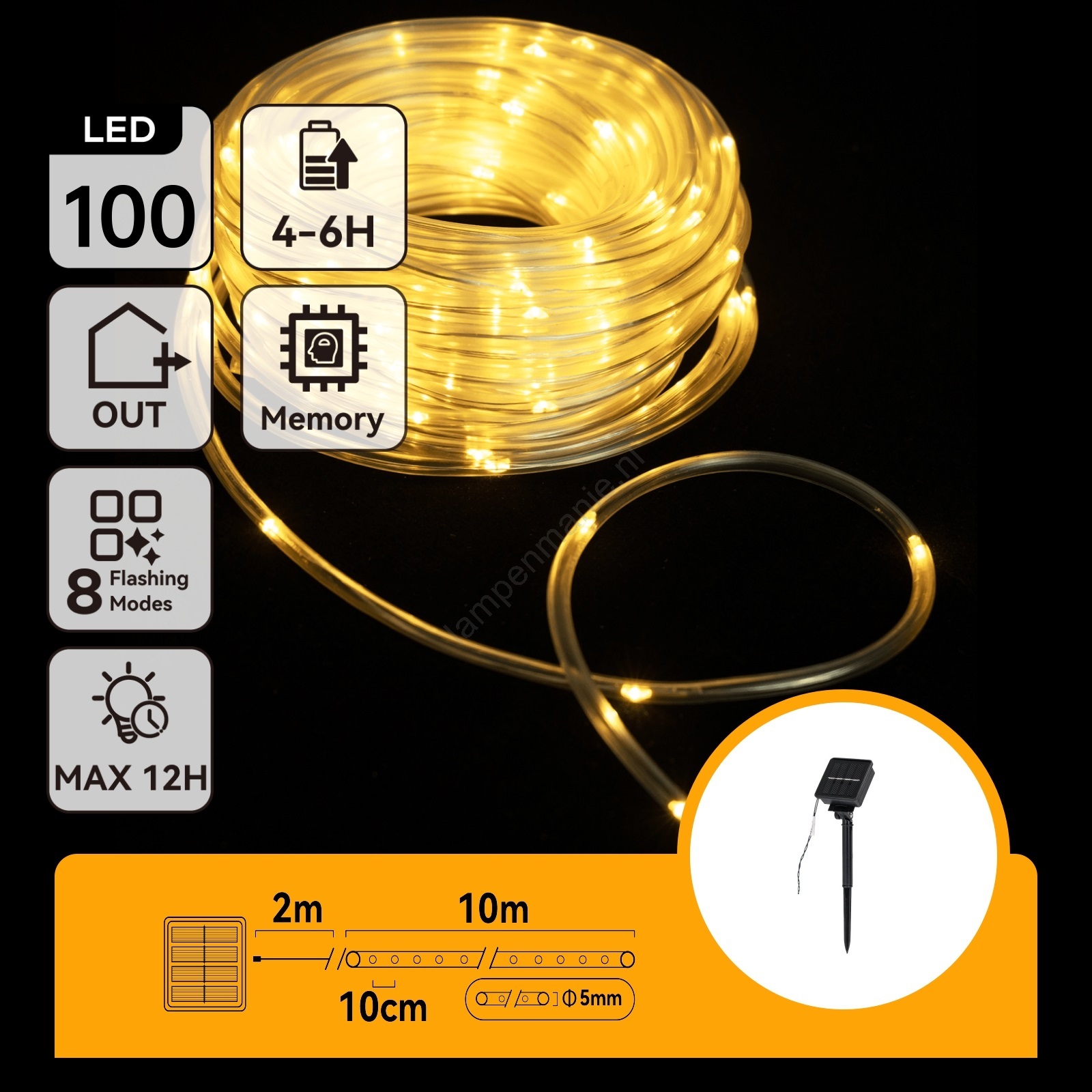 • Lengte van het verlichte deel van de kabel: 10 m.