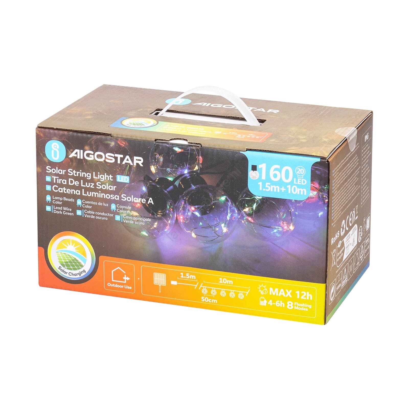 Aigostar - LED Solar Kerst lichtsnoer 20xLED/8 Functies 11,5m IP65 Meerdere kleuren