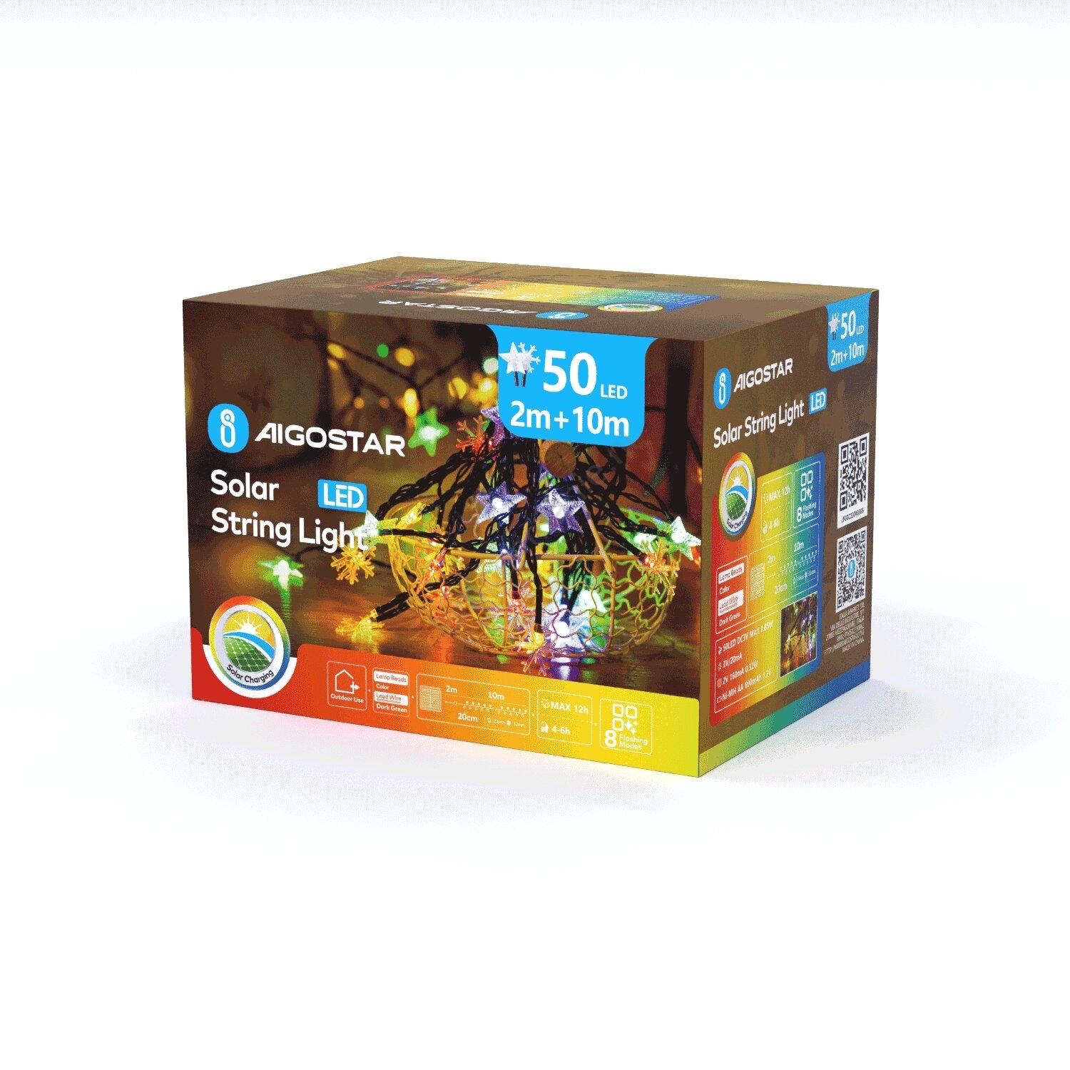 • Aigostar - LED Solar Kerstketting 50xLED/8 Functies 800 mAh 12m IP65 Meerdere kleuren