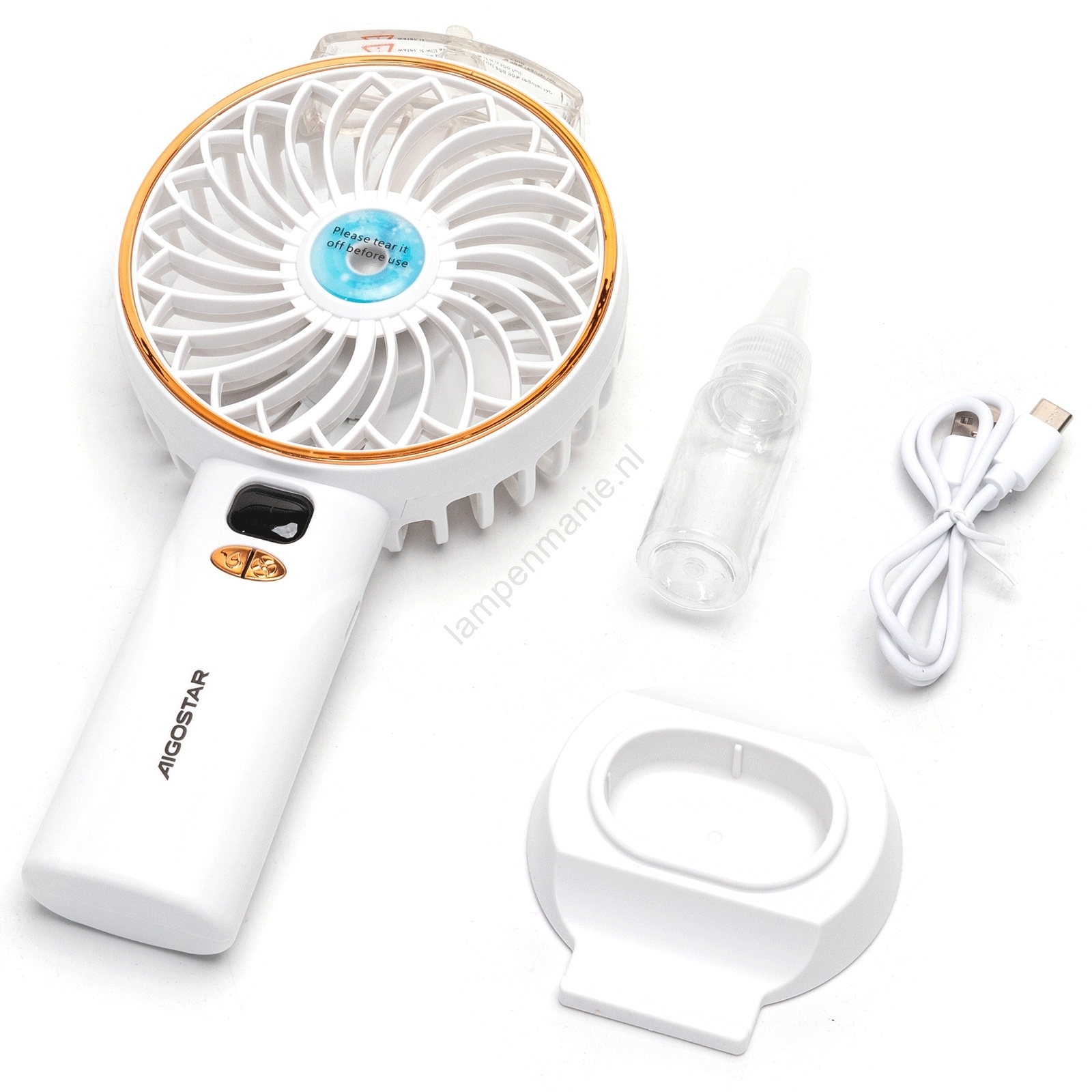 Aigostar - Oplaadbare zakventilator 5W/5V 2400mAh USB wit