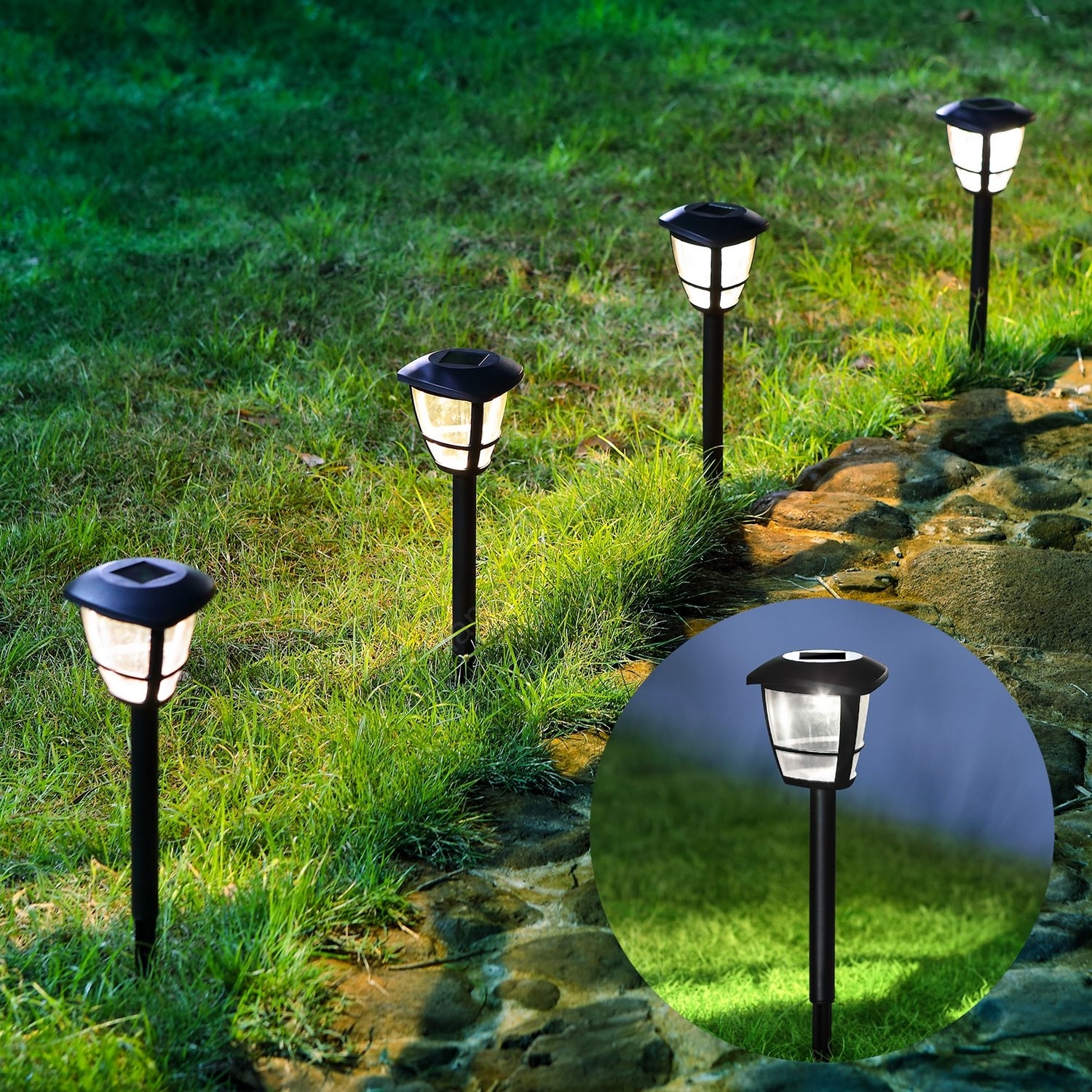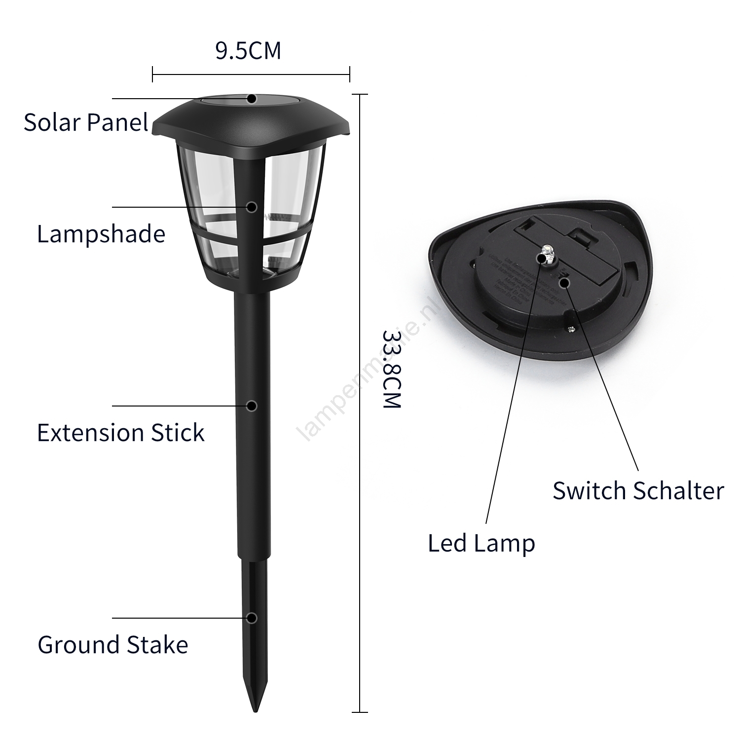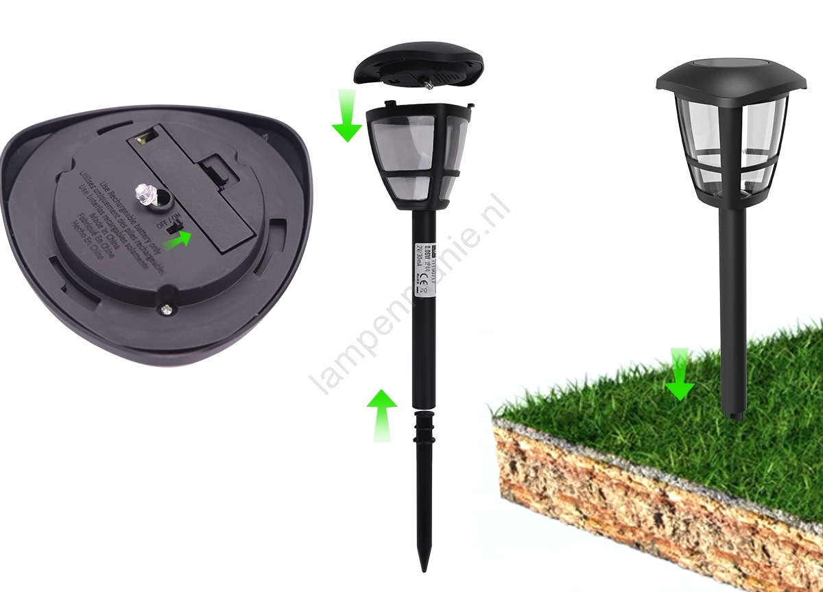 Aigostar - set van 12 LED-zonnelampen LED/0,06W/2V 33,8 cm 6500K 100 mAh IP44 zwart