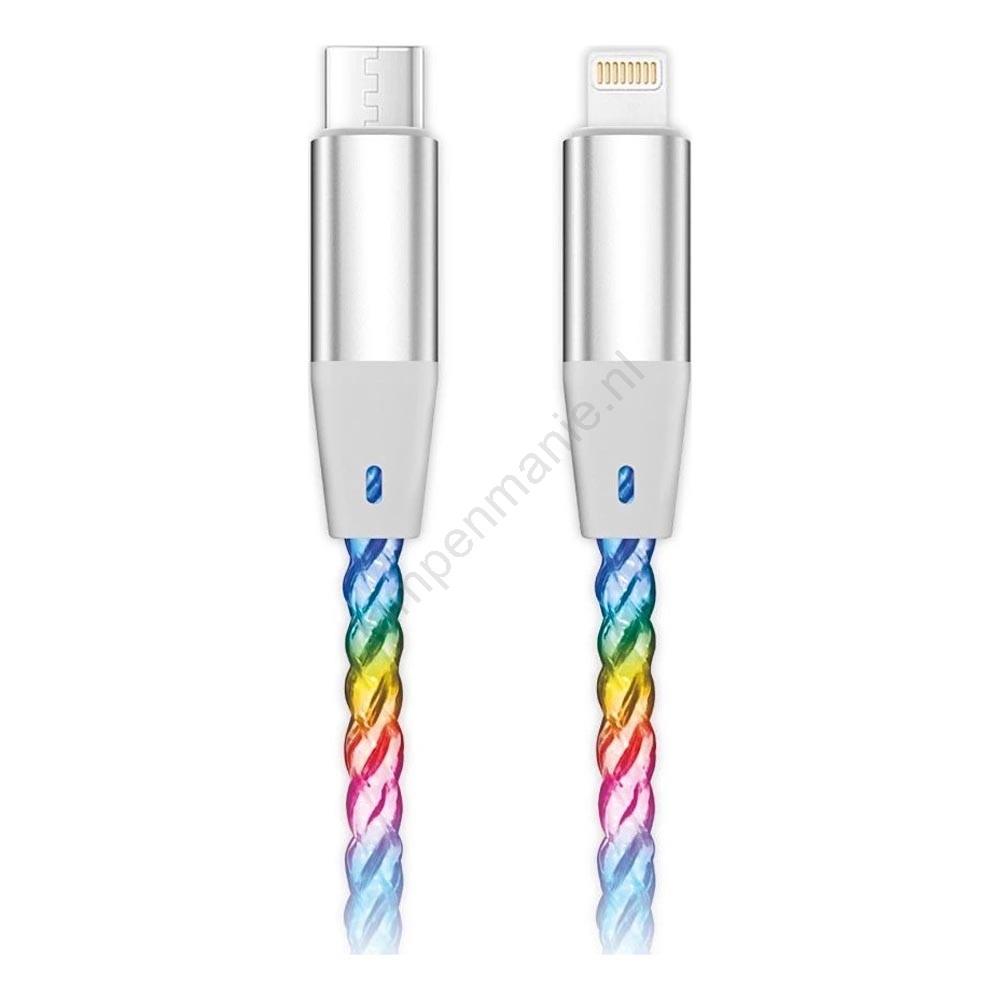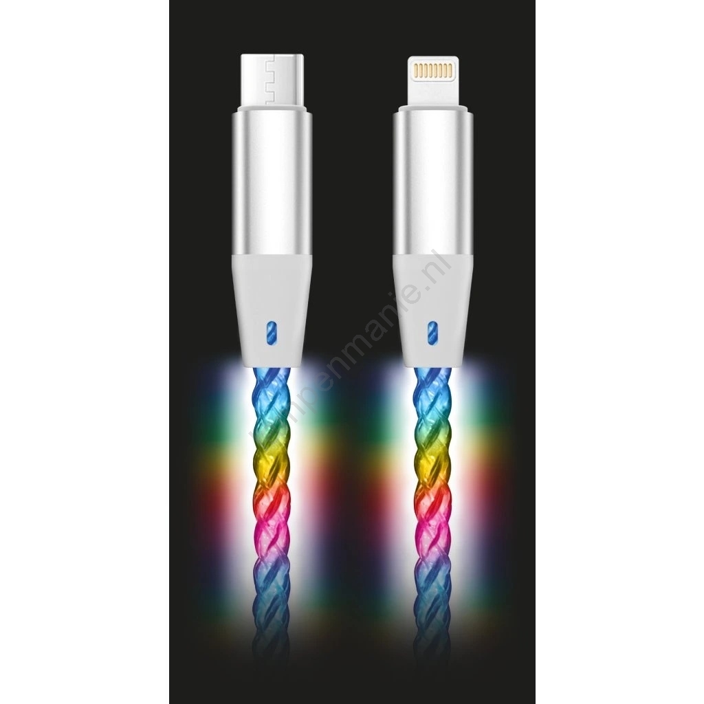 • De kabel heeft wisselende regenboogkleurige LED-verlichting.