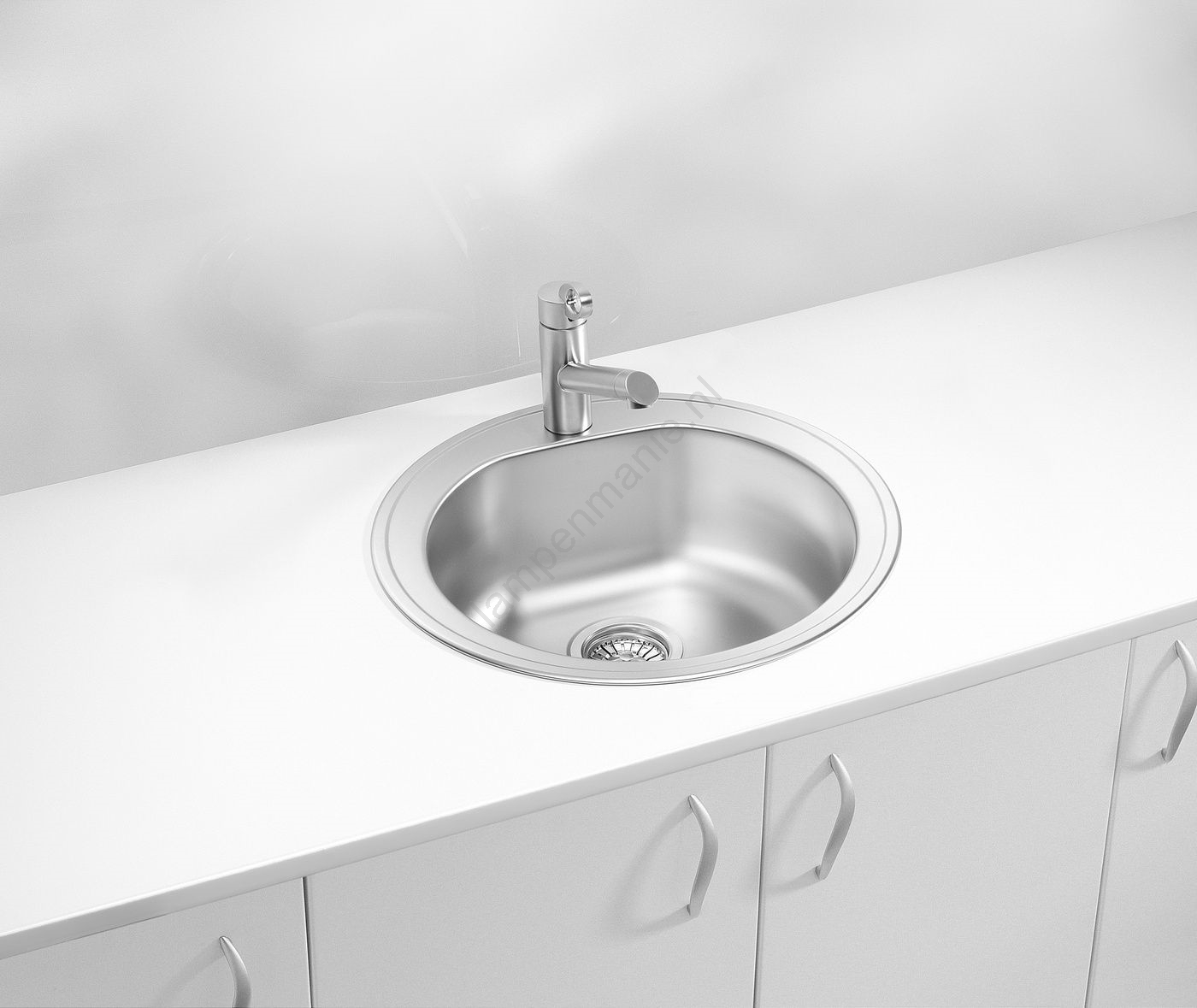 • De spoelbak heeft één kraangat.