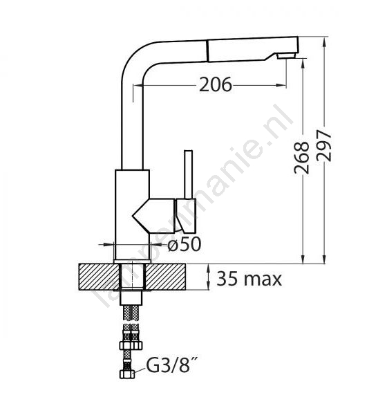 • Inhoud van de verpakking: keukenkraan, aansluitslangen, montageset.
