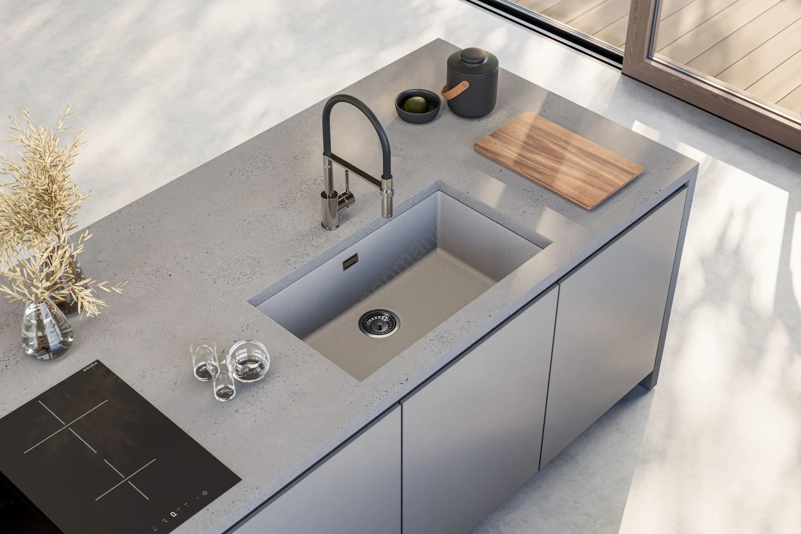 • Keukenspoelbak met modern ontwerp.