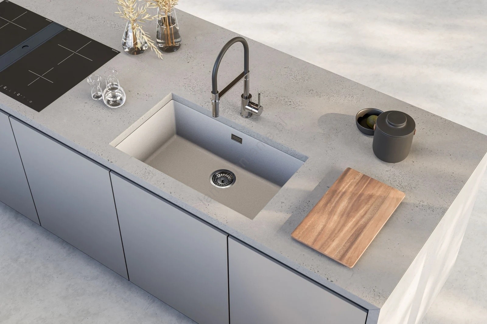 • Afdichting is niet inbegrepen; bij granieten spoelbakken wordt siliconenkit gebruikt als afdichting.