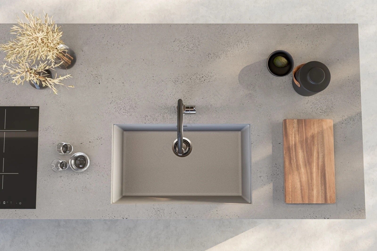• Gemaakt van hoogwaardig graniet, bestand tegen krassen, vlekken en hoge temperaturen.