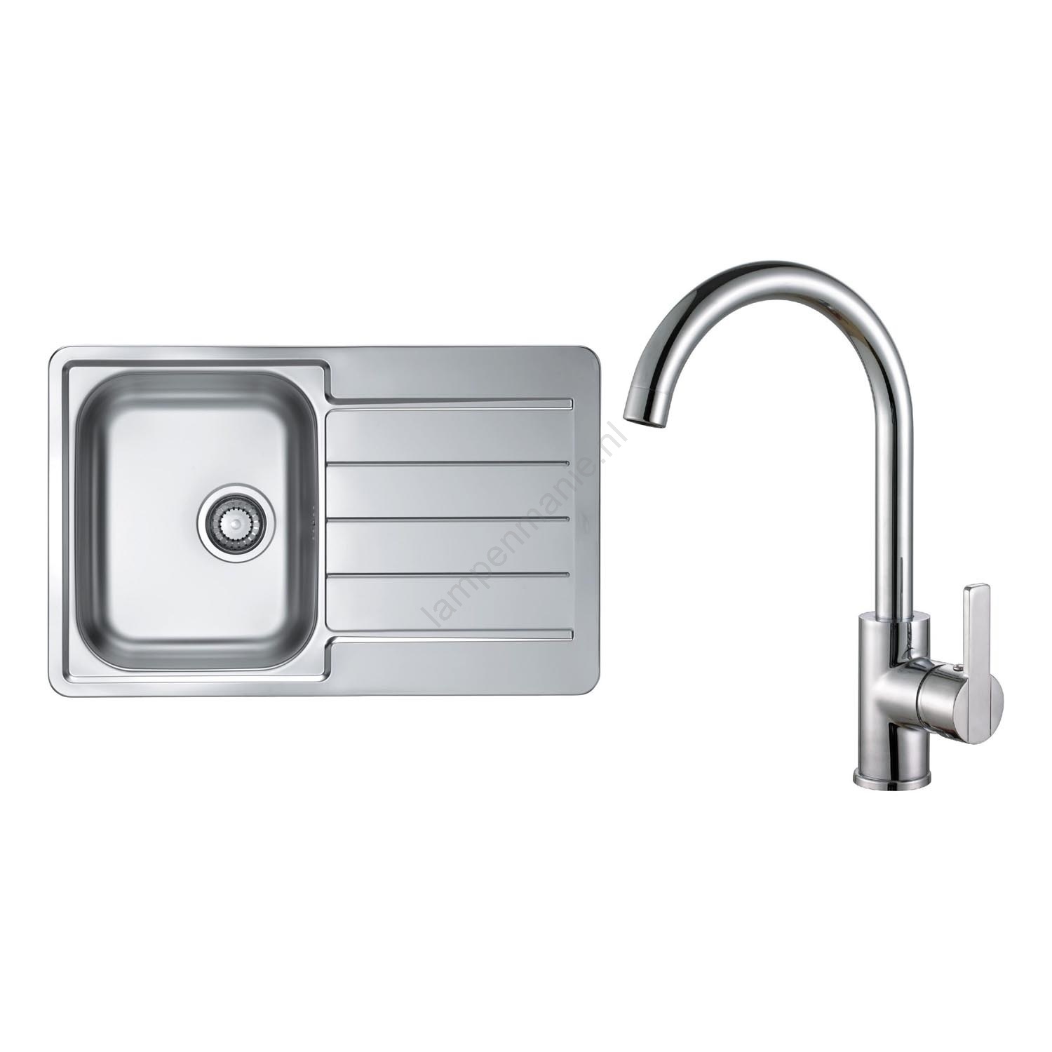 • ALVEUS SETA259 - Keukenspoelbak BASIC 78 x 43,5 cm + keukenkraan RIVIERA 14,8 cm satijn/hoogglans chroom