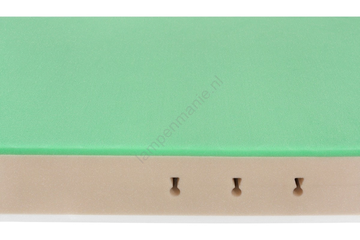• De matras is vervaardigd uit een combinatie van traagschuim en hybride Flexifoam® schuimen, die zorgen voor orthopedische eigenschappen, veerkracht, ademend vermogen en duurzaamheid.