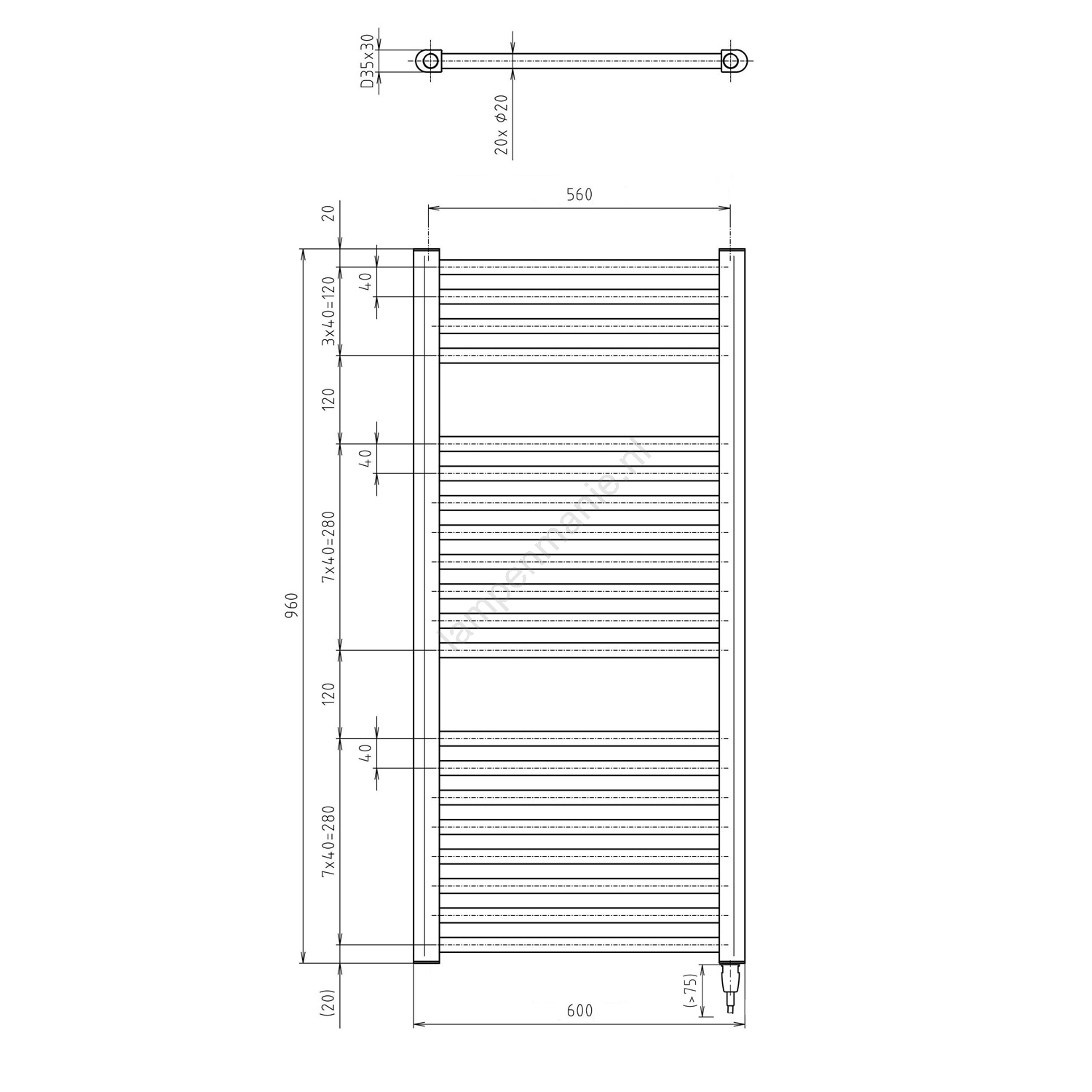 Aqualine - Elektrische badkamerradiator DIRECT-E 400W 96x60 cm mat zwart