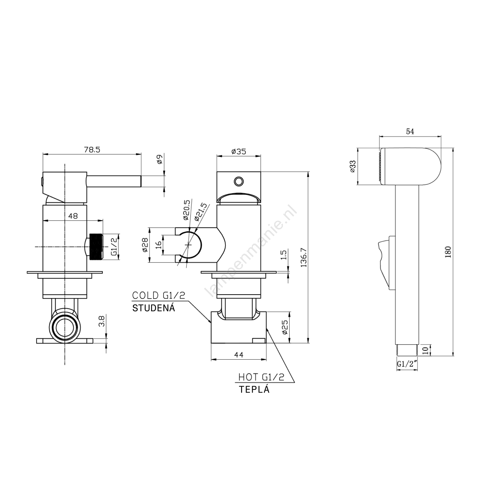 Aqualine, Badkamer, Badkamerkranen, Bidet douches, Bidetkranen, Douchesets, Kranen, Merken, Verborgen kranen