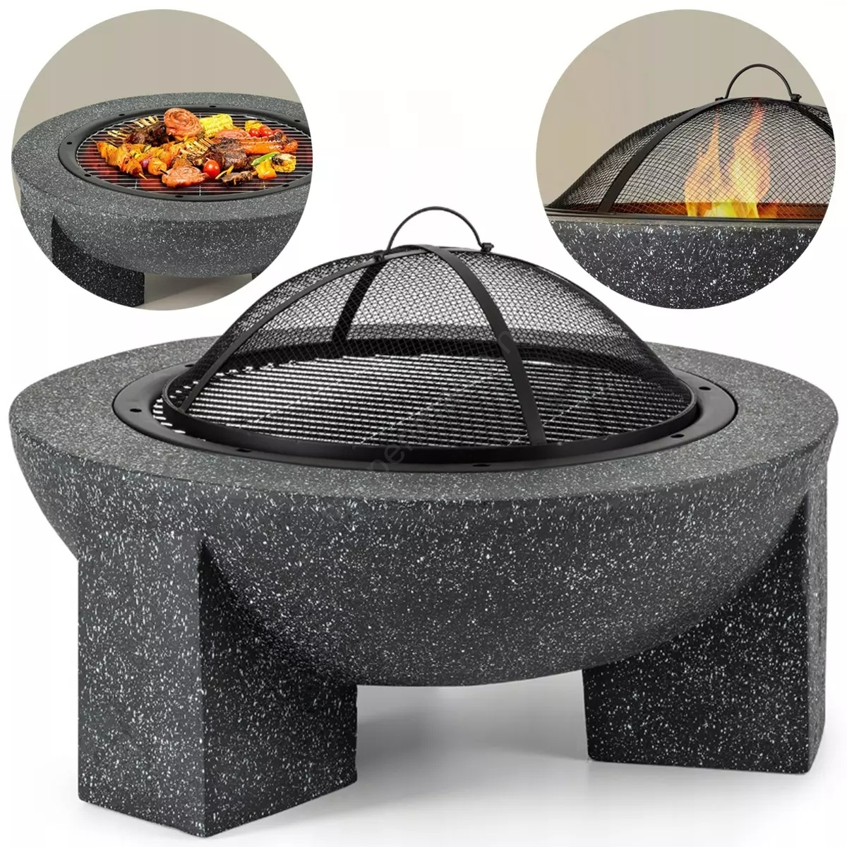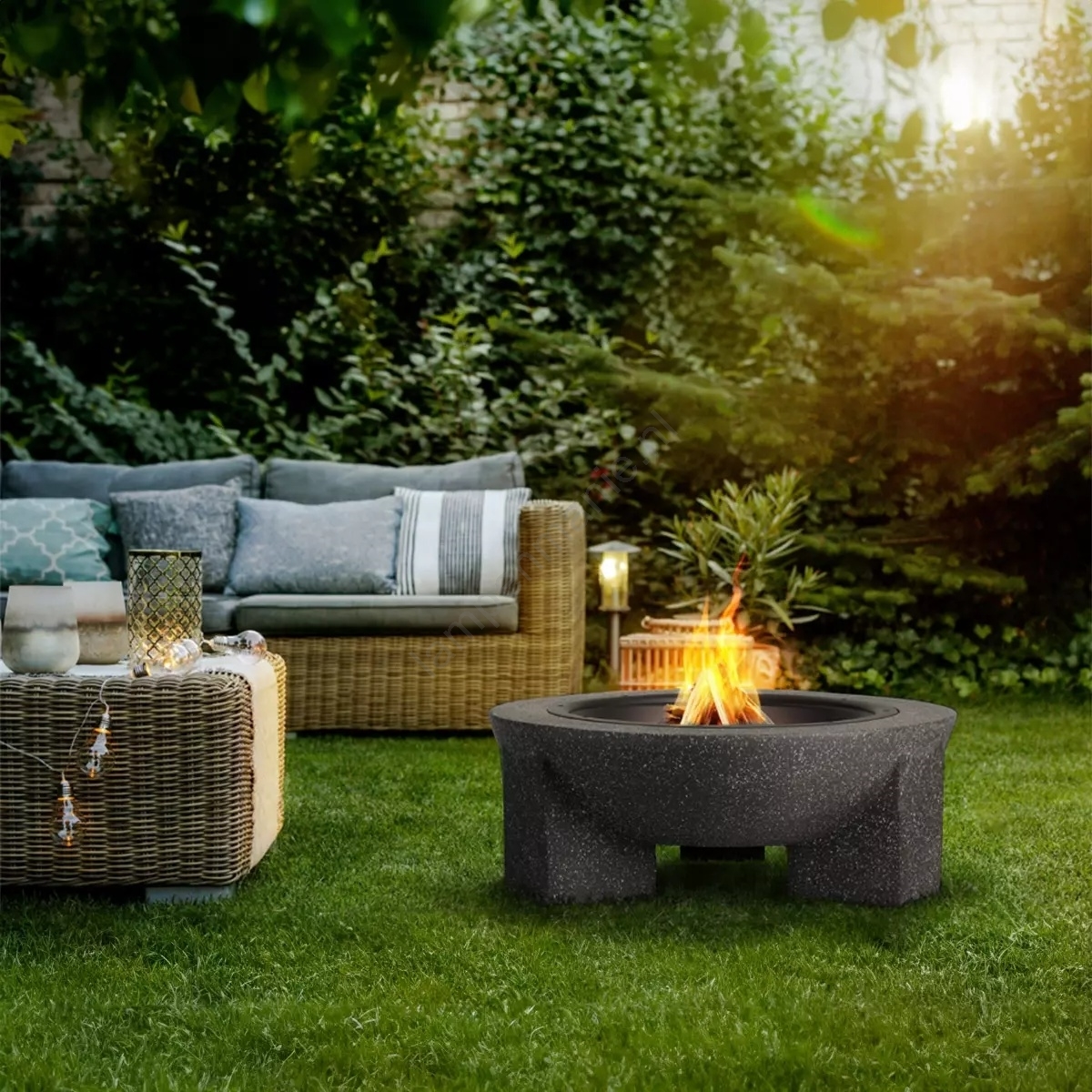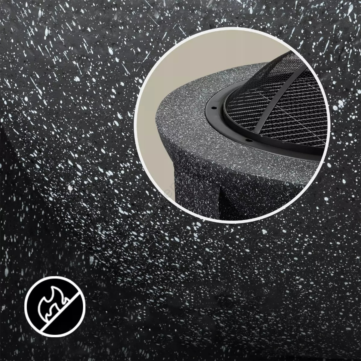 • De vuurschaal is vervaardigd uit hittebestendig materiaal (gelakt staal en magnesiumoxide) dat beton nabootst.