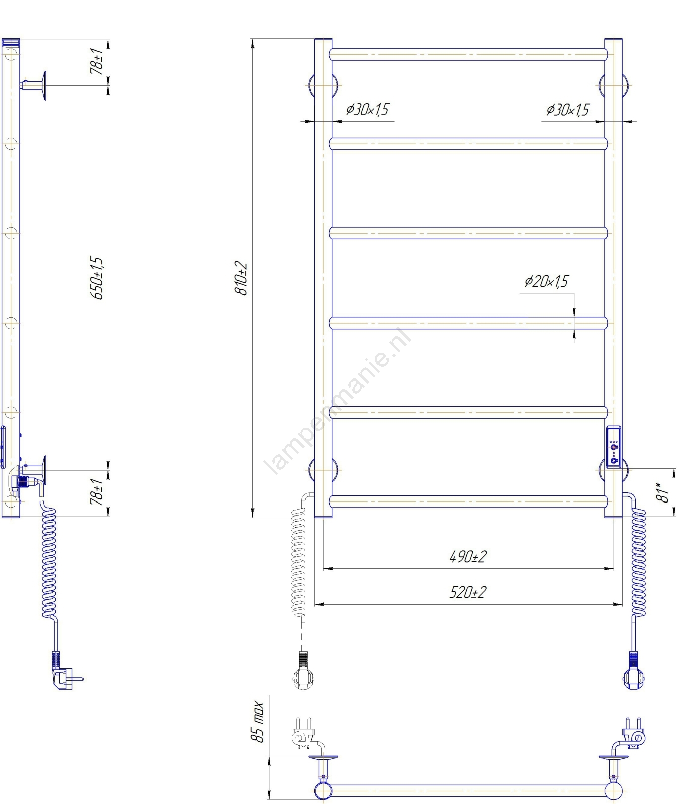 Badkamer handdoekradiator CLASSIC 110W/230V 81x52 cm RVS/antraciet, rechts