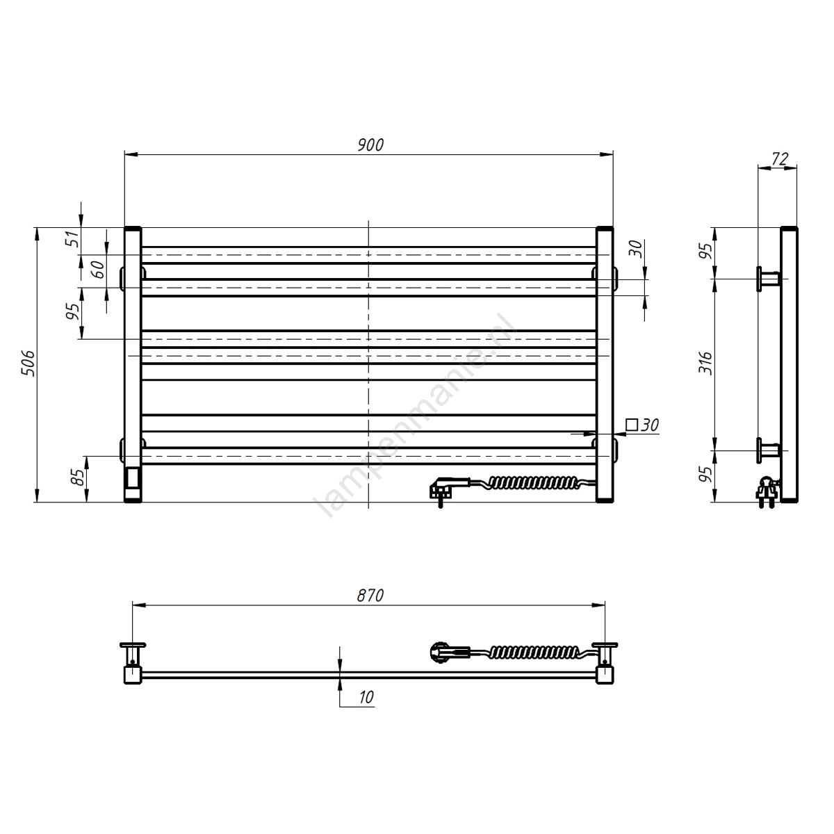Elektrische handdoekendroger met thermostaat AVANGARD 181 W 50 x 90 cm zwart, rechts