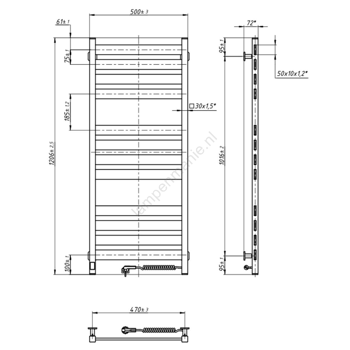 Badkamer handdoekradiator met thermostaat LARGO 256W 120x50 cm zwart rechts
