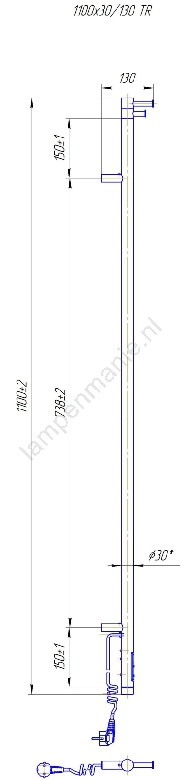 Badkamerradiator RAY 25W/230V 110x30 cm IP44 rvs/antraciet