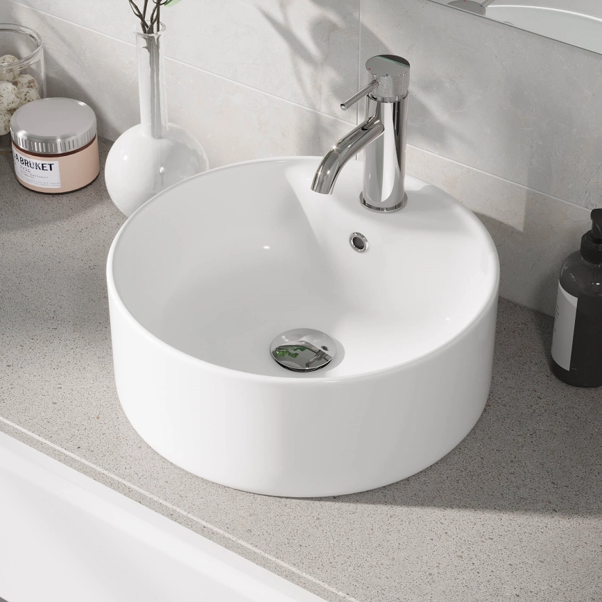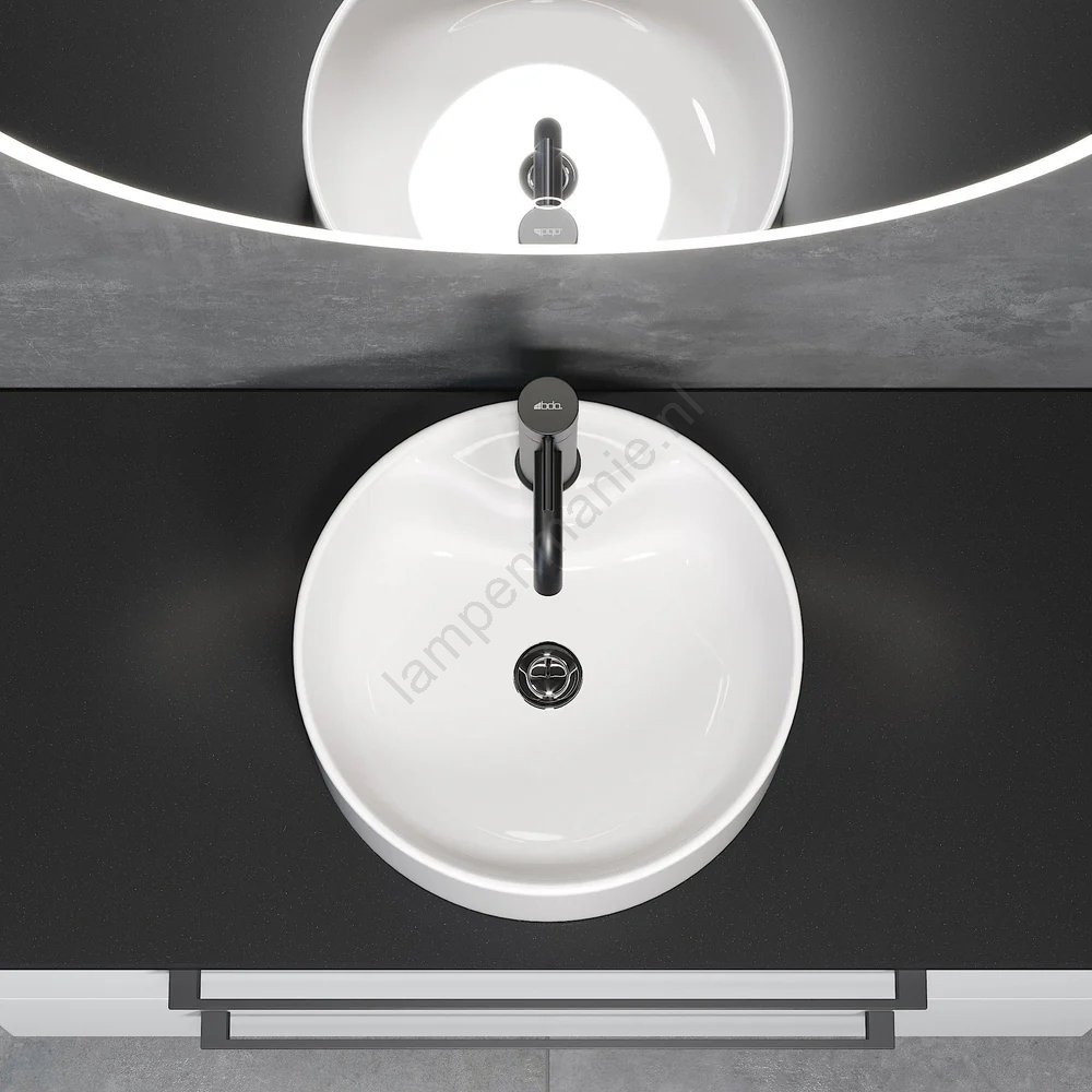 • De waskom is bedoeld voor plaatsing op een wastafelblad, waardoor flexibele positionering en combinatie met diverse typen badkamerbladen mogelijk is.