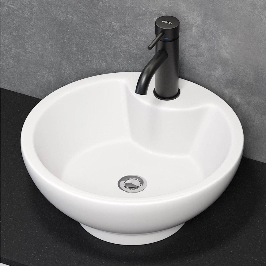 • De wastafel is bedoeld voor installatie op een blad, waardoor u hem flexibel kunt plaatsen en combineren met verschillende soorten badkamerbladen.