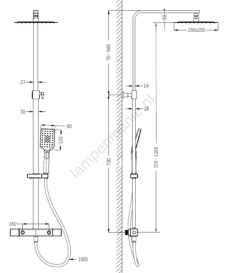 • Set bestaat uit een thermostatische kraan van massief messing.