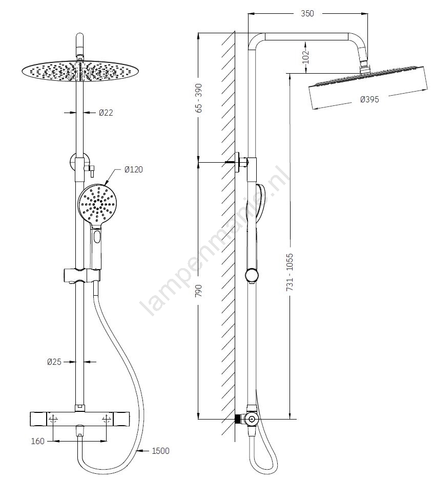 • De set bestaat uit een thermostaatkraan van massief messing.