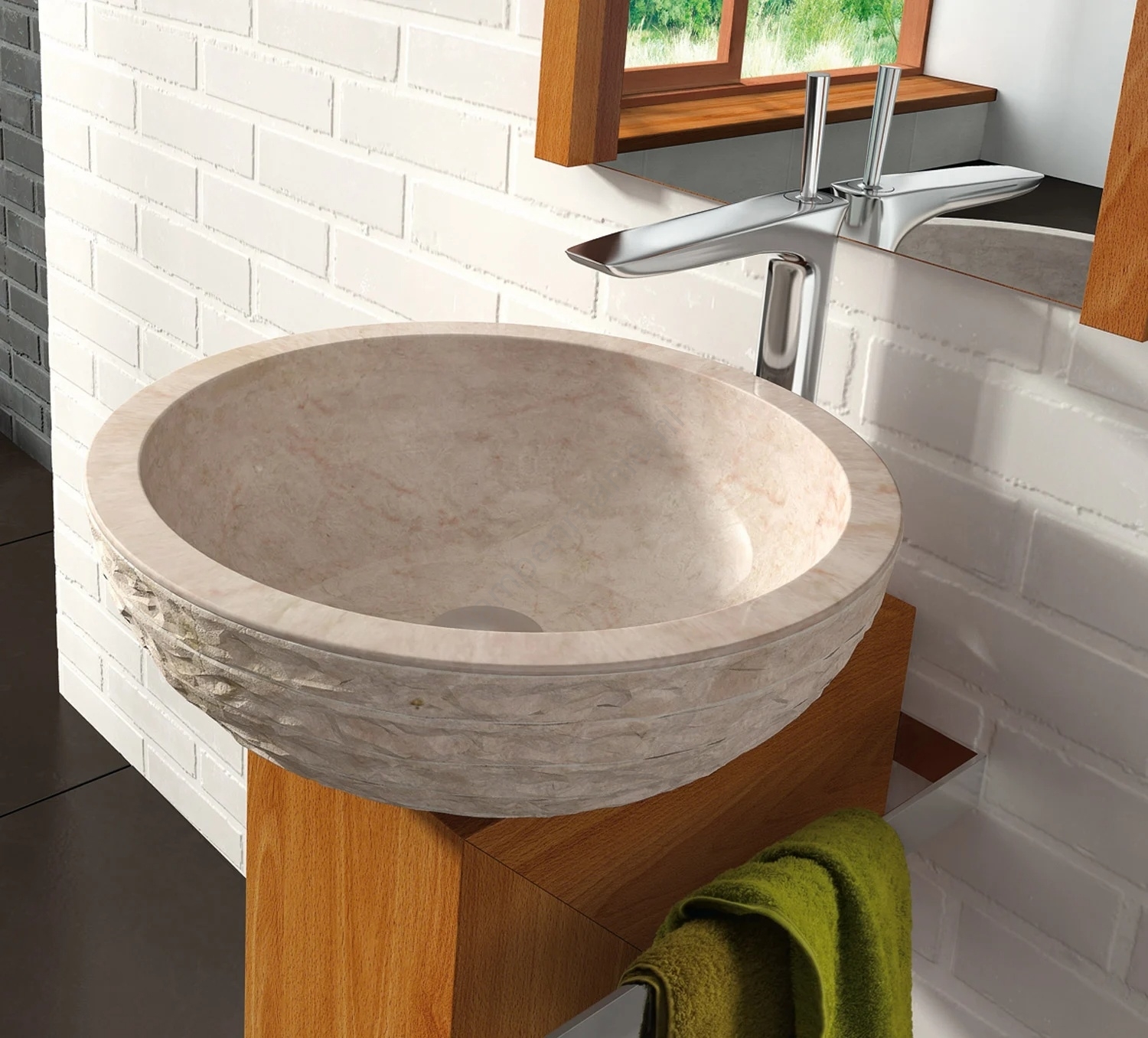 Bathco 00318 - Opzetwastafel PUKET Ø 45 cm steen/beige