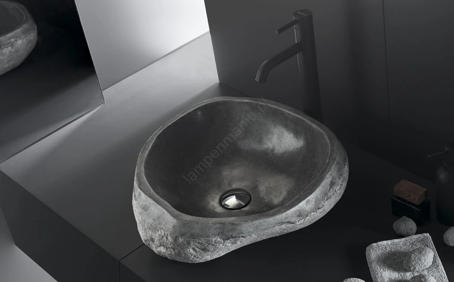 • De waskom is uit natuurlijke riviersteen gehouwen.