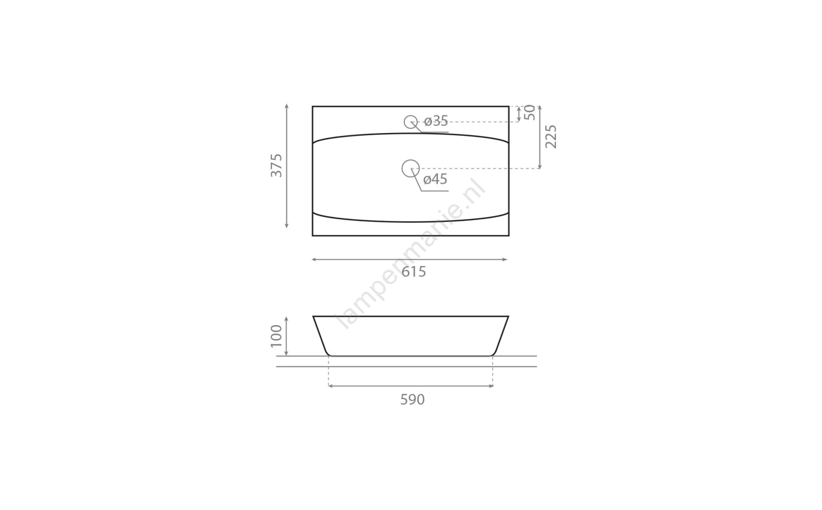 • De verpakking bevat de wastafel zonder sifon en kraan.