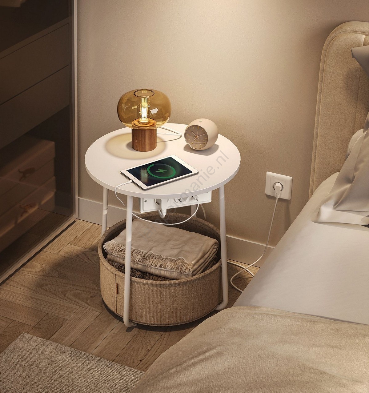 • Bijzettafel met ingebouwde stopcontacten en USB-poorten NOIRA beige/wit