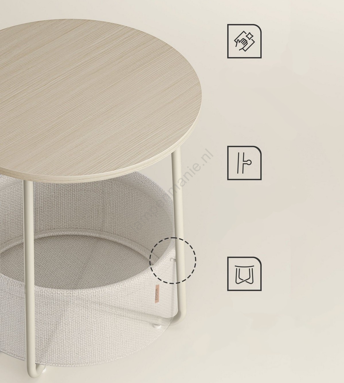 • Voorzien van een stoffen mand onderin met een hoogte van 18,2 cm en een diameter van 39,6 cm.