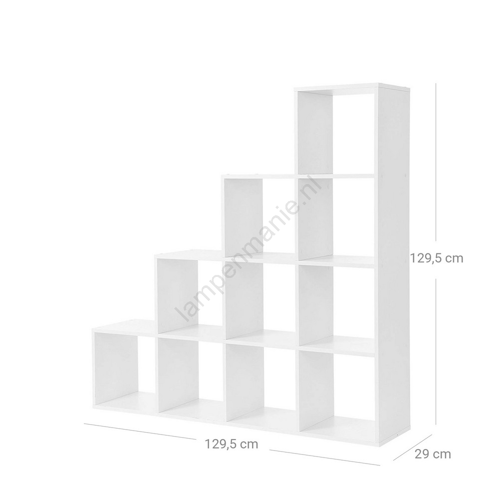 • Met 10 vakken (elk met een draagvermogen tot 10 kg) kunt u er boeken, beeldjes, decoraties en andere pronkstukken op presenteren.