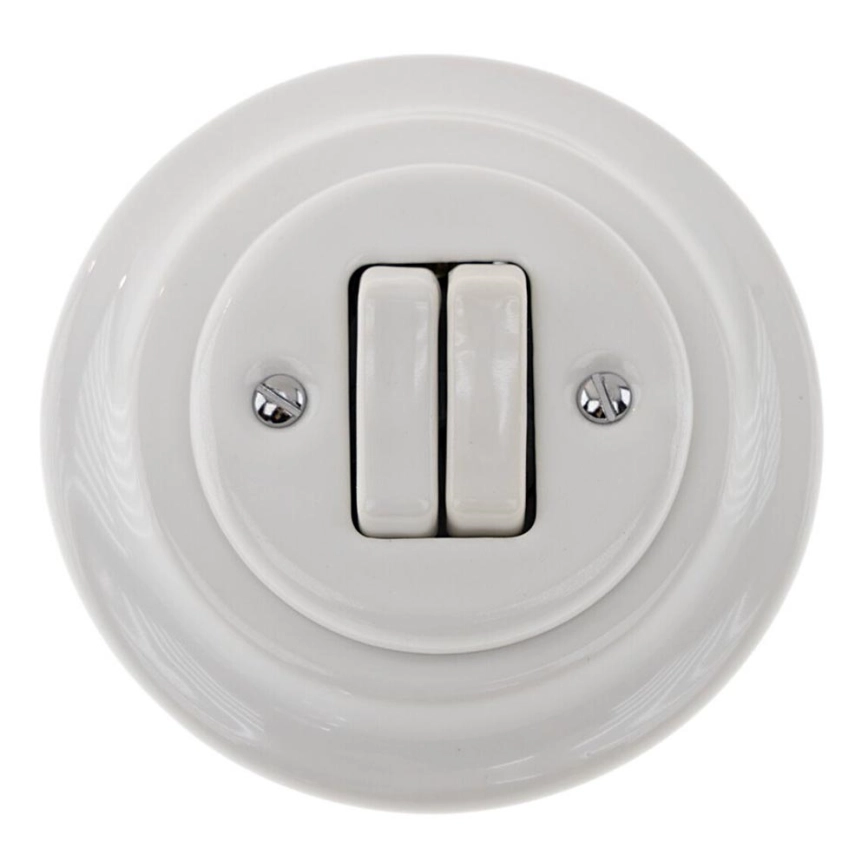 Bohemia-Design - Porseleinen retro dubbele schakelaar met afdekraam nr. 5 wit