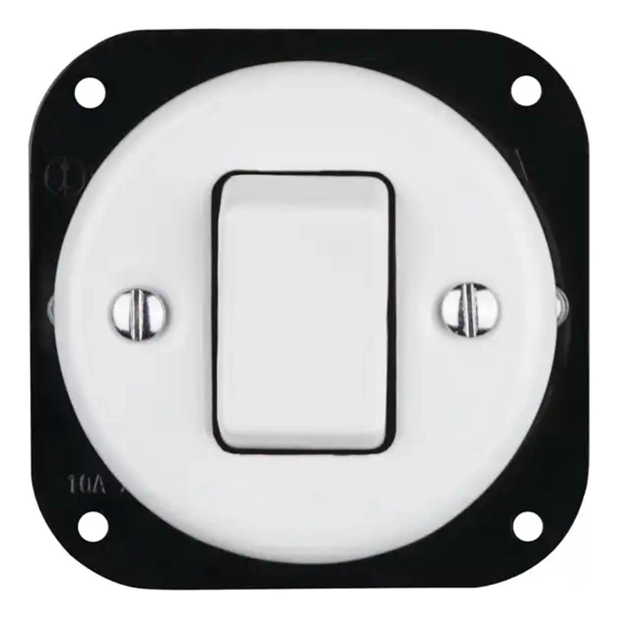 Bohemia-Design - Porseleinen retro enkele schakelaar zonder afdekraam nr. 7 wit