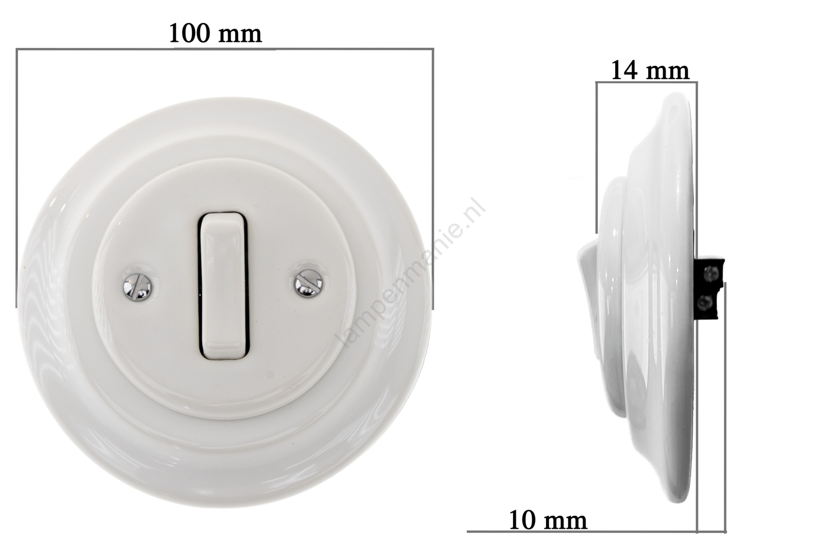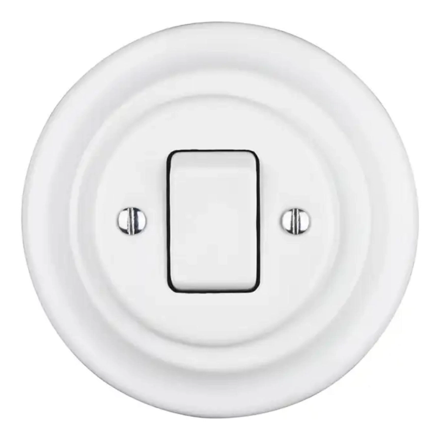 Bohemia-Design - Retro porseleinen enkele schakelaar met afdekraam nr. 7 wit