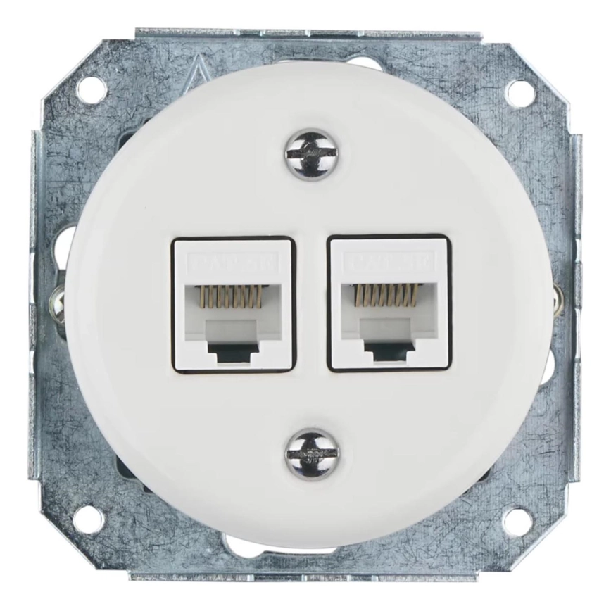 Bohemia-Design - Porseleinen retro Ethernet-aansluiting zonder afdekraam 2x CAT.5E wit
