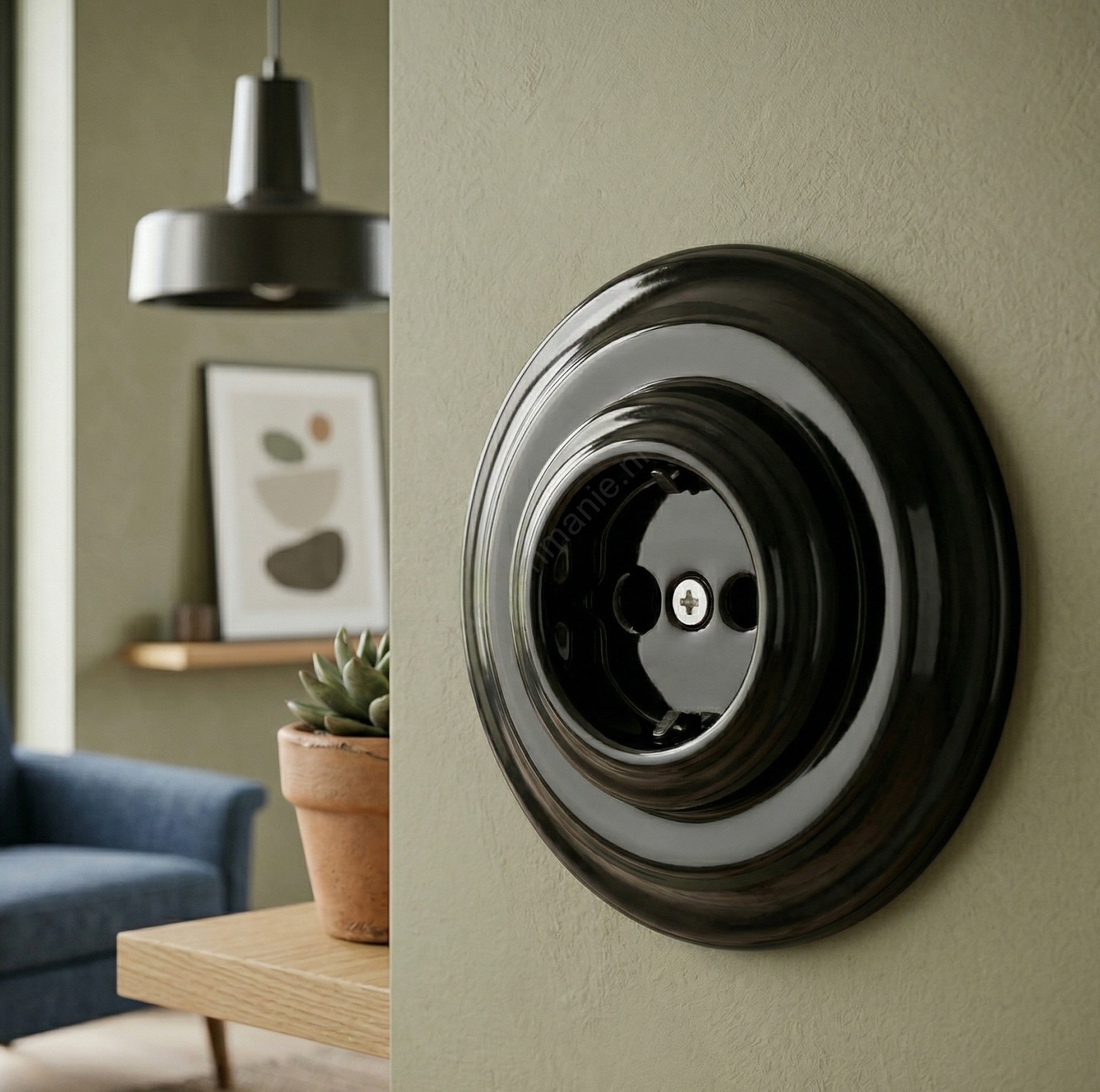 • Bohemia-Design - Porseleinen retro wandcontactdoos met afdekraam SCHUKO 250V/16A zwart
