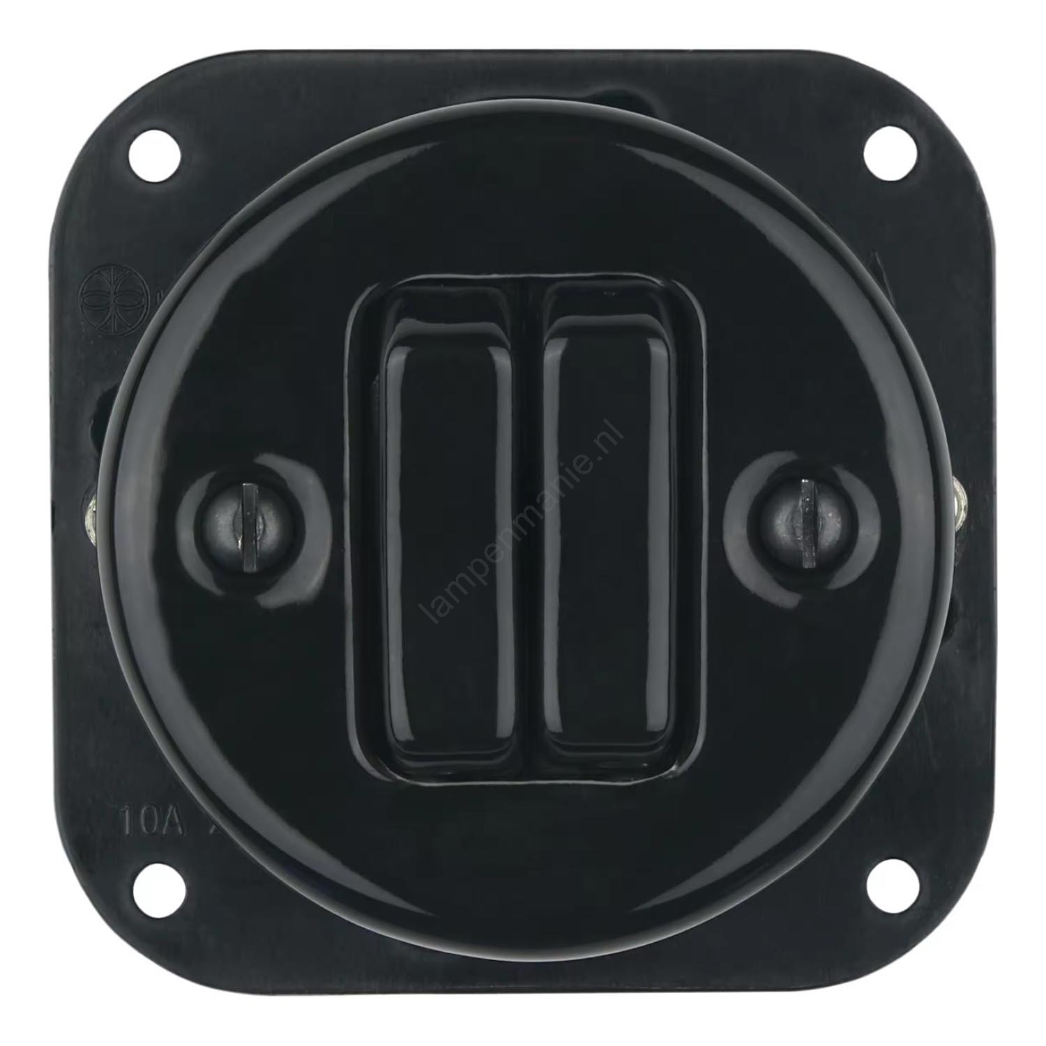 Bohemia-Design - porseleinen retro dubbele schakelaar zonder afdekraam nr. 6+6 zwart